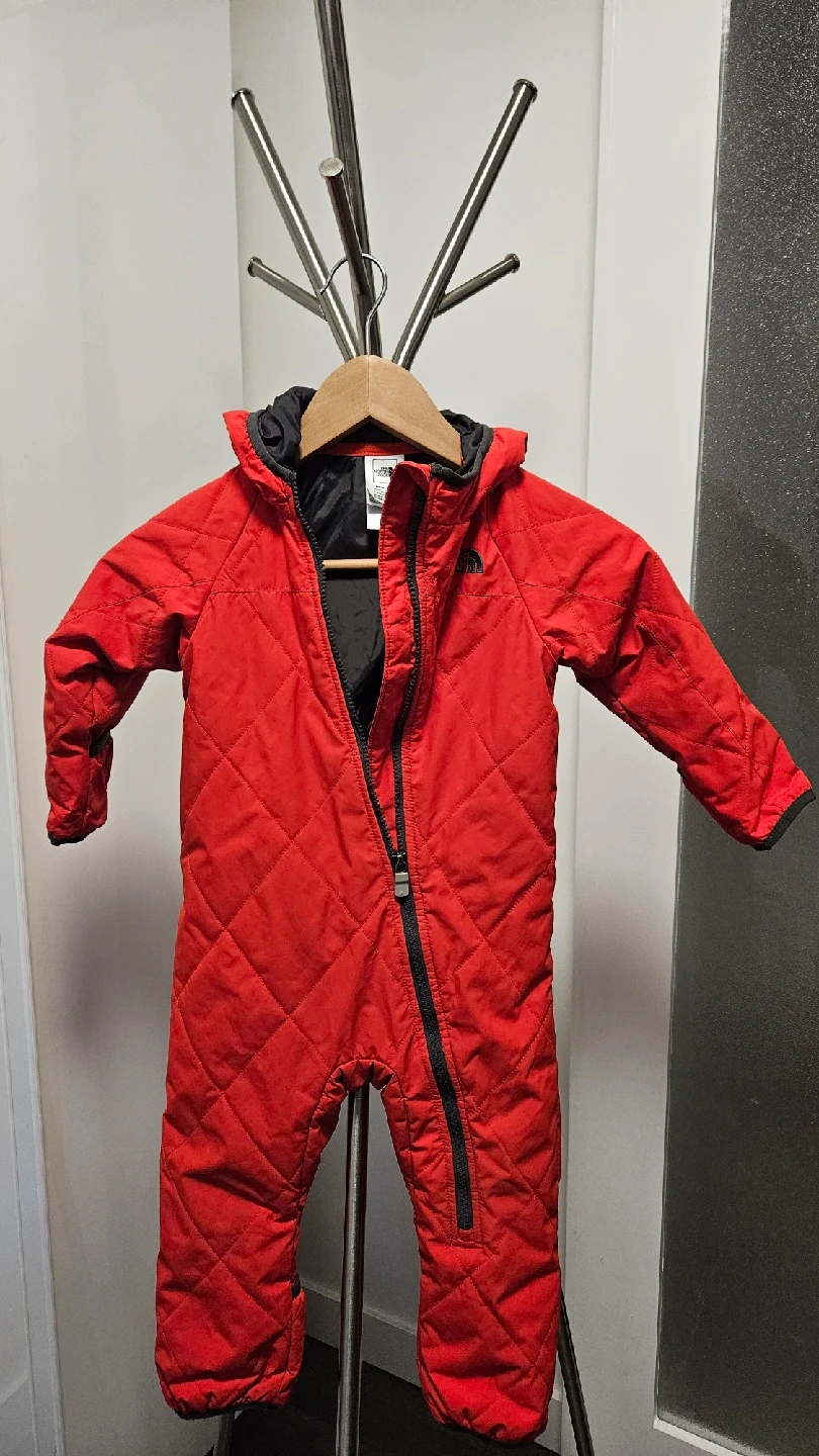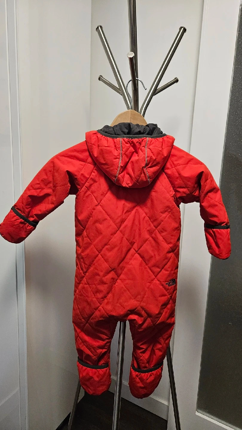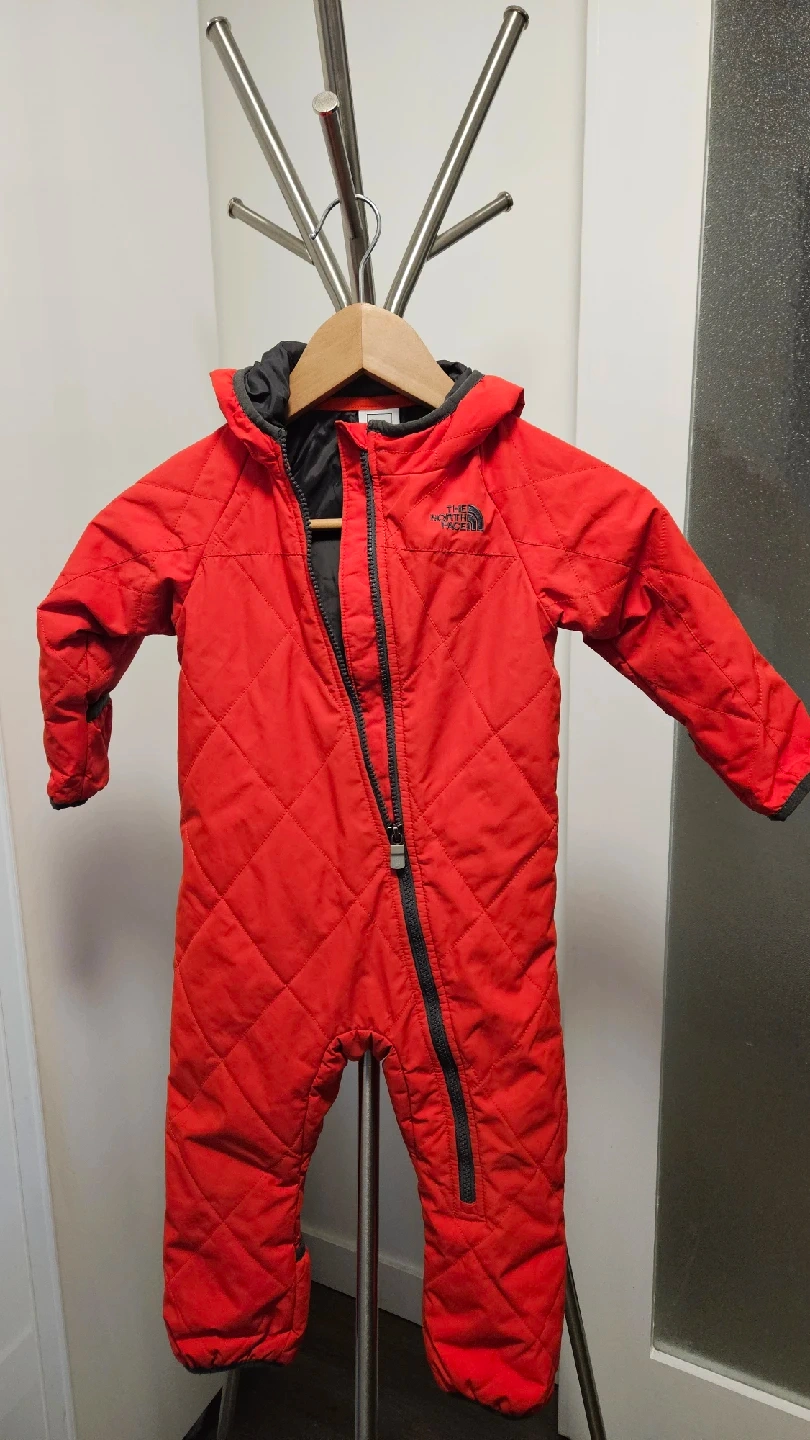 64Selling a gently used The North Face infant snowsuit in size 18-24 months! It's a cozy and warm one-piece, perfect for keeping your little one snug during the colder months. The bright red colour is great for visibility, and it's in great condition