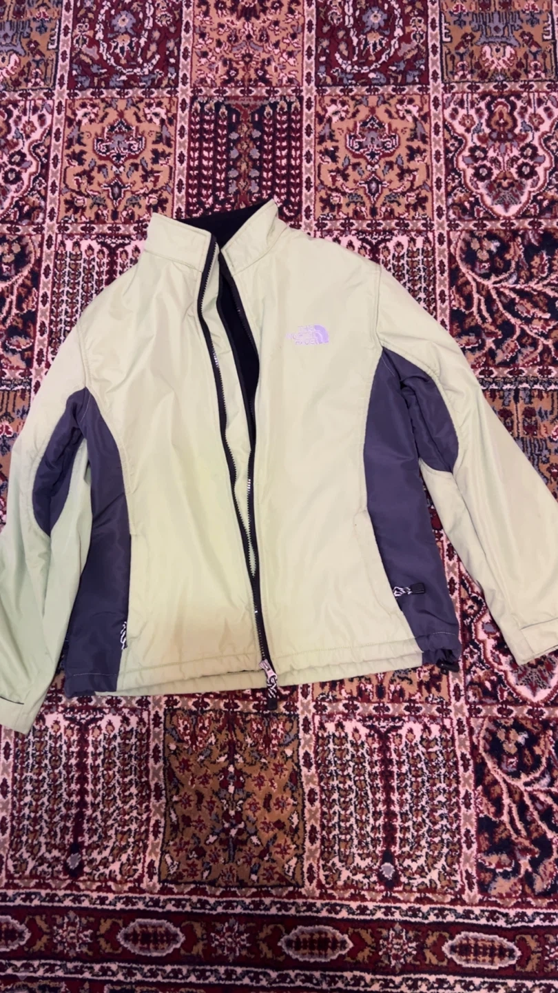 10Selling a The North Face jacket in light green and grey. It's in great condition and ready for a new home! Perfect for layering or wearing on its own during milder weather. It has a full zip and some nice detailing.