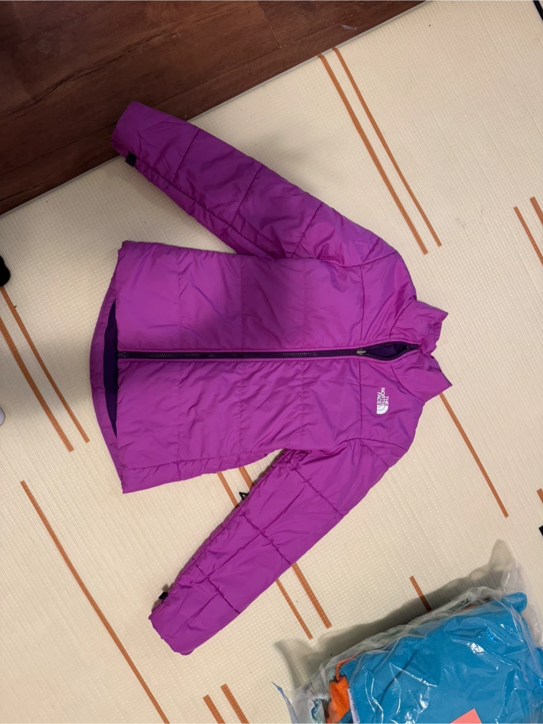 38Selling a The North Face snowsuit set in purple! The set is size M, age 7-8. There are some minor damage on the pants. 1. Shell jacket 2. Insulated jacket 3. Snow pants