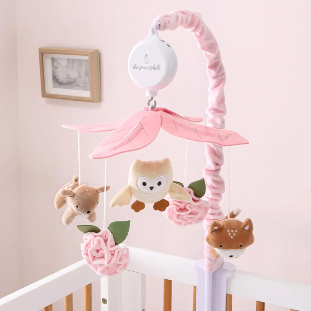 The Peanutshell Crib Mobile for Girls - Pink and White Musical Baby Crib Mobile with 12 Lullabies, Forest Baby Little Forest Nursery Decor Never installed crib so This remained unused