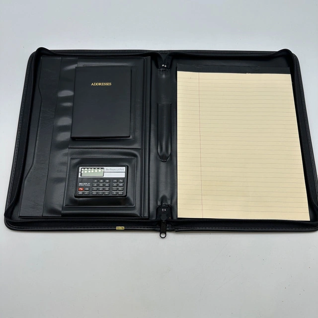 This is a used Presidential Portfolio in good condition. This organizer is perfect for professionals on the go. It features a calculator, notepad, and address book. All you need to conduct business! Here are some additional features: * Calculator included * Address book included * Pen holder * Writing pad included Ready to add a touch of class to your daily grind? This presidential portfolio might just be your ticket to feeling like you're signing executive orders instead of just paying bills! Don't miss out – if you're seeing this ad, the portfolio is still available, ready to make you the president of your own productivity!