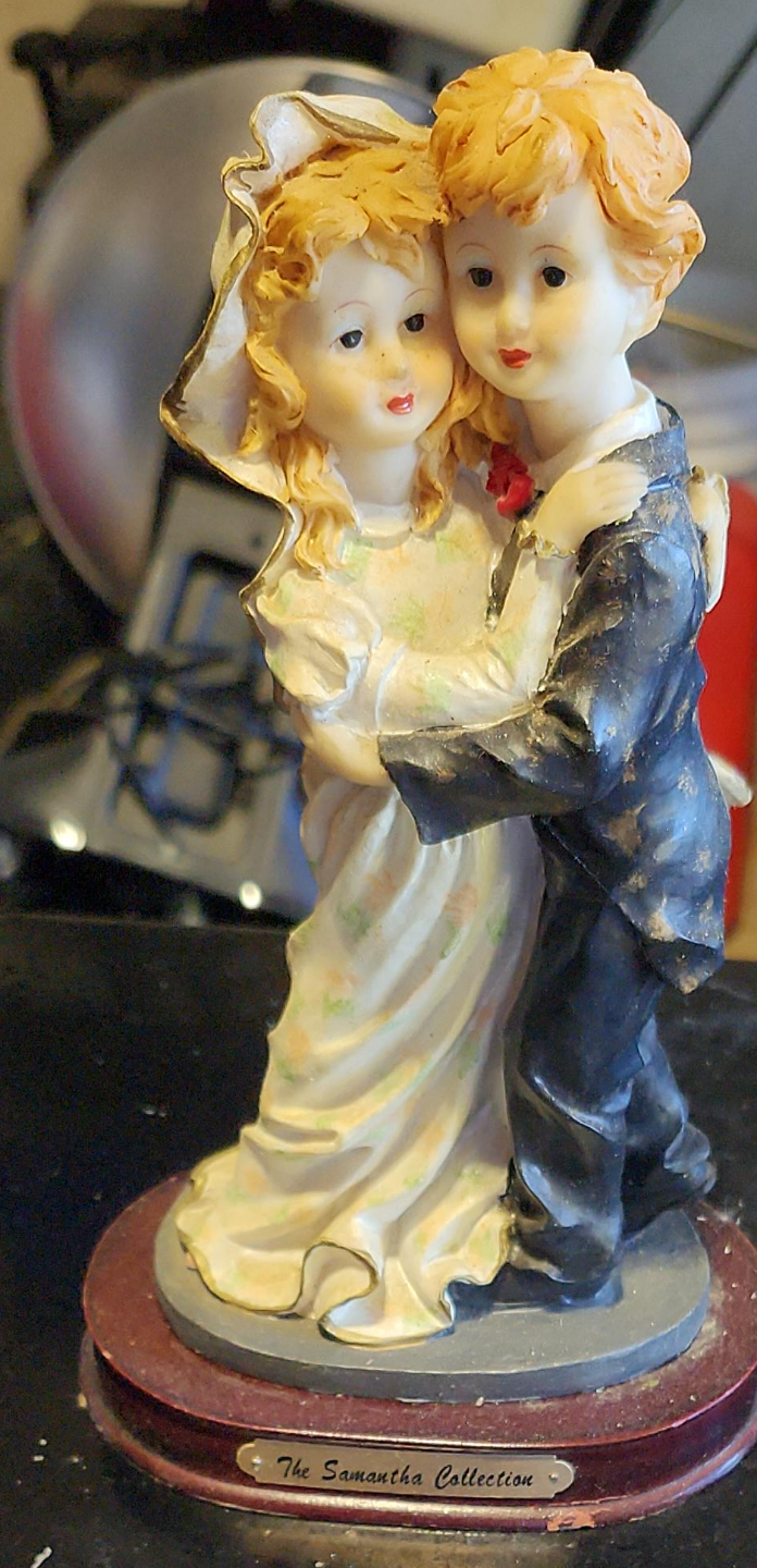 Adorable figurine of a couple in wedding attire. Part of The Samantha Collection. Collectible resin figurine.