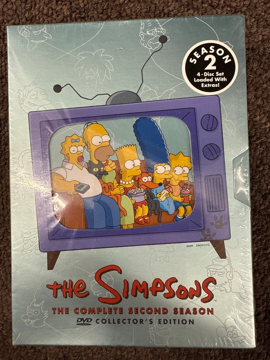 112*New and still in wrapping* Selling The Simpsons: The Complete Second Season DVD Collector's Edition! This 4-disc set is loaded with extras and contains all 22 episodes. It also includes special features like commentaries, deleted scenes, and more! $59.99 on Amazon