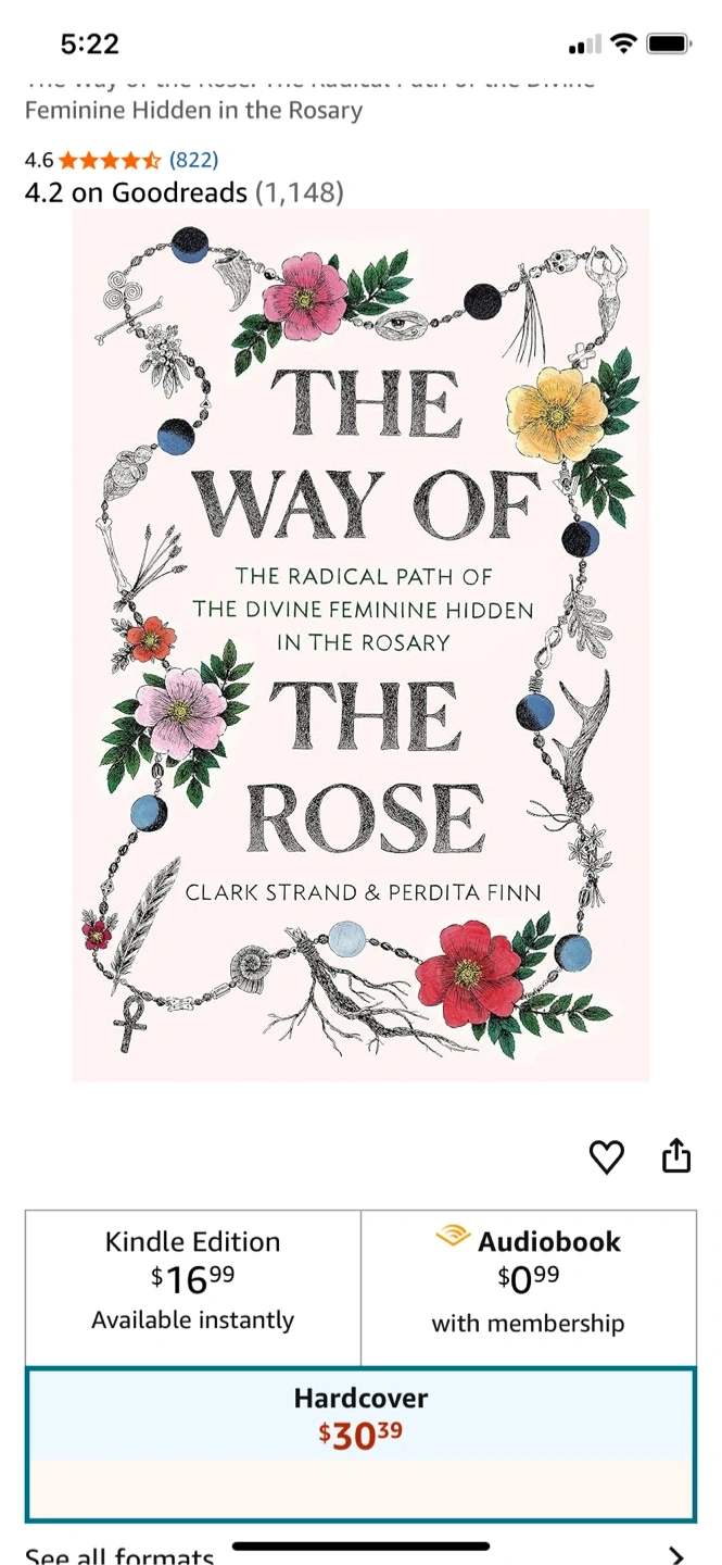 96Selling "The Way of the Rose: The Radical Path of the Divine Feminine Hidden in the Rosary" by Clark Strand and Perdita Finn This book explores the rosary and its connection to feminine wisdom and the natural world