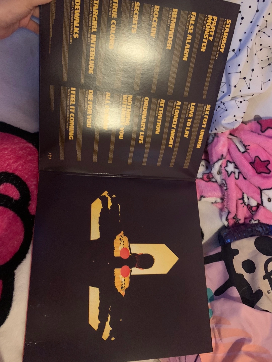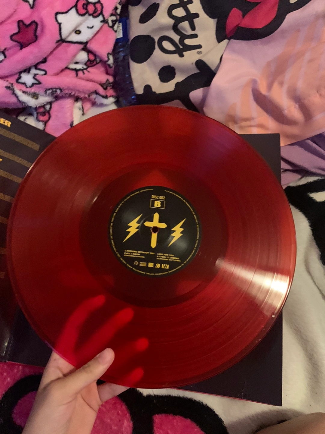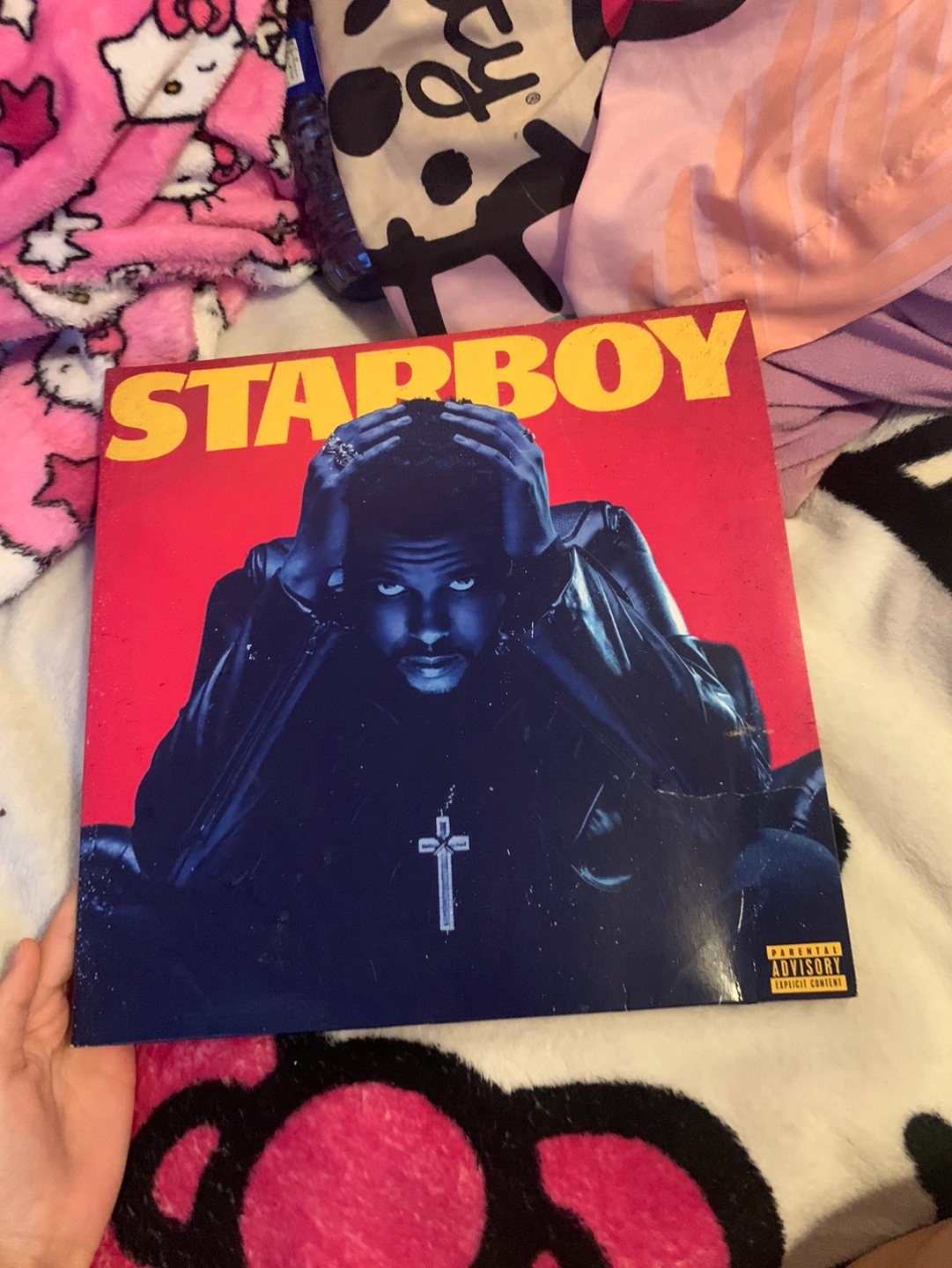 60Red vinyl record of The Weeknd's album Starboy. Includes both sides of the record and the album cover. Has a rip