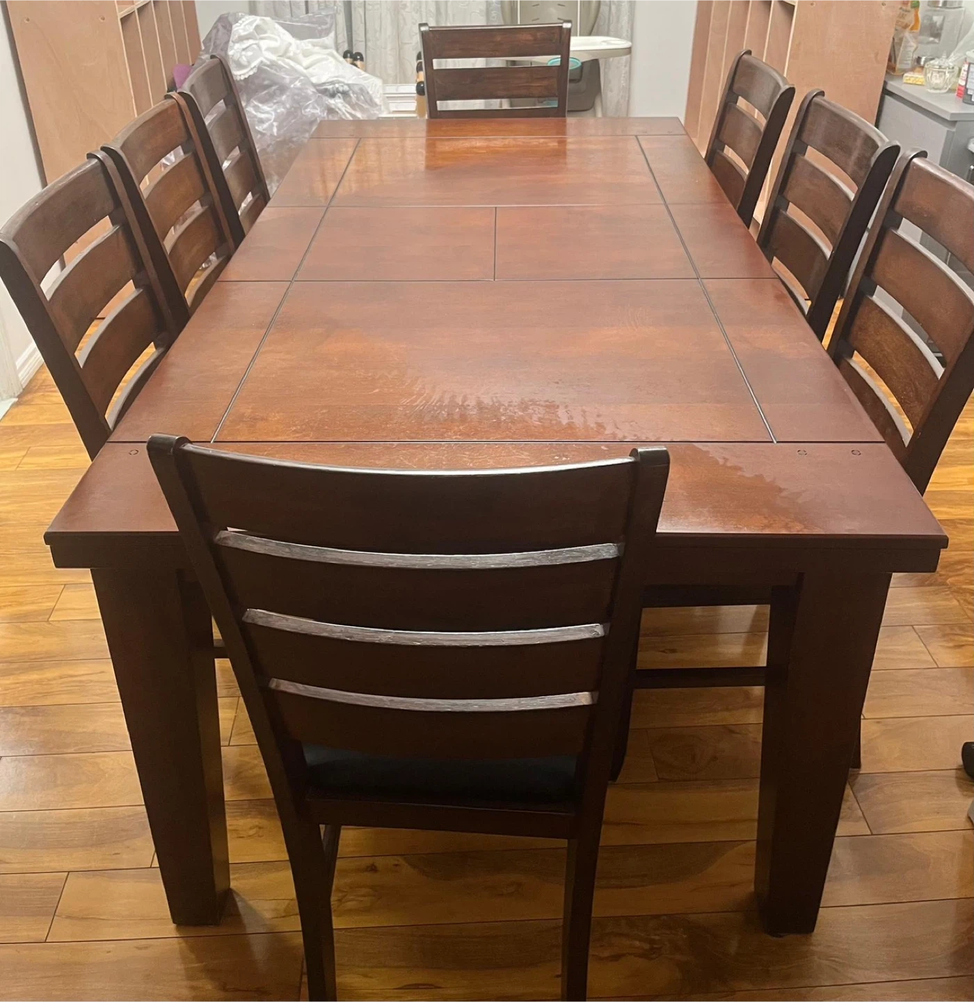 The table measures 208 cm × 107 cm with the leaves. Without the leaf, the length is 45 cm less (163 cm × 107 cm).