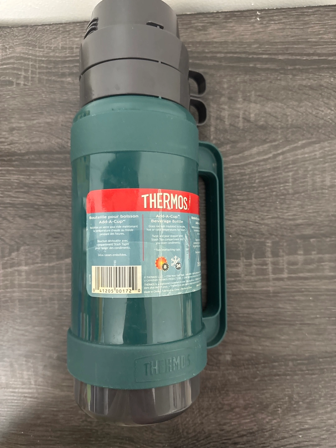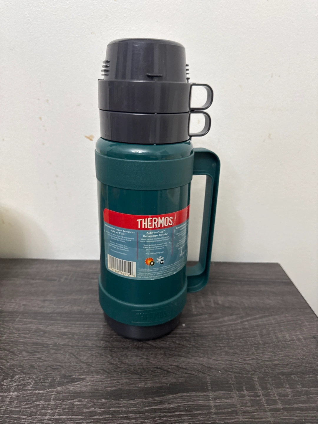 64I'm selling a Thermos Ask-A-Cup Beverage Bottle. It's in great shape and ready to keep your drinks hot or cold. Perfect for camping, picnics, or just keeping at home!