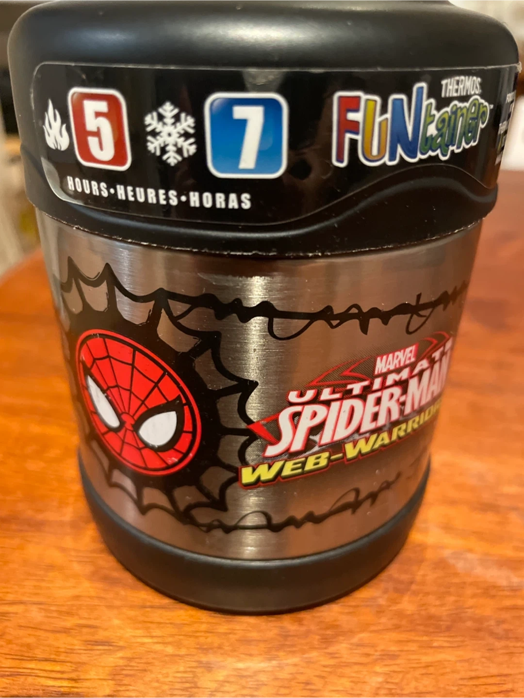 118Keep your little one's lunch warm with this Spider-Man themed Thermos Funtainer food jar! It holds 10 oz/290 ml and keeps food hot for up to 5 hours or cold for up to 7 hours. Perfect for school lunches or outings! Pick up only