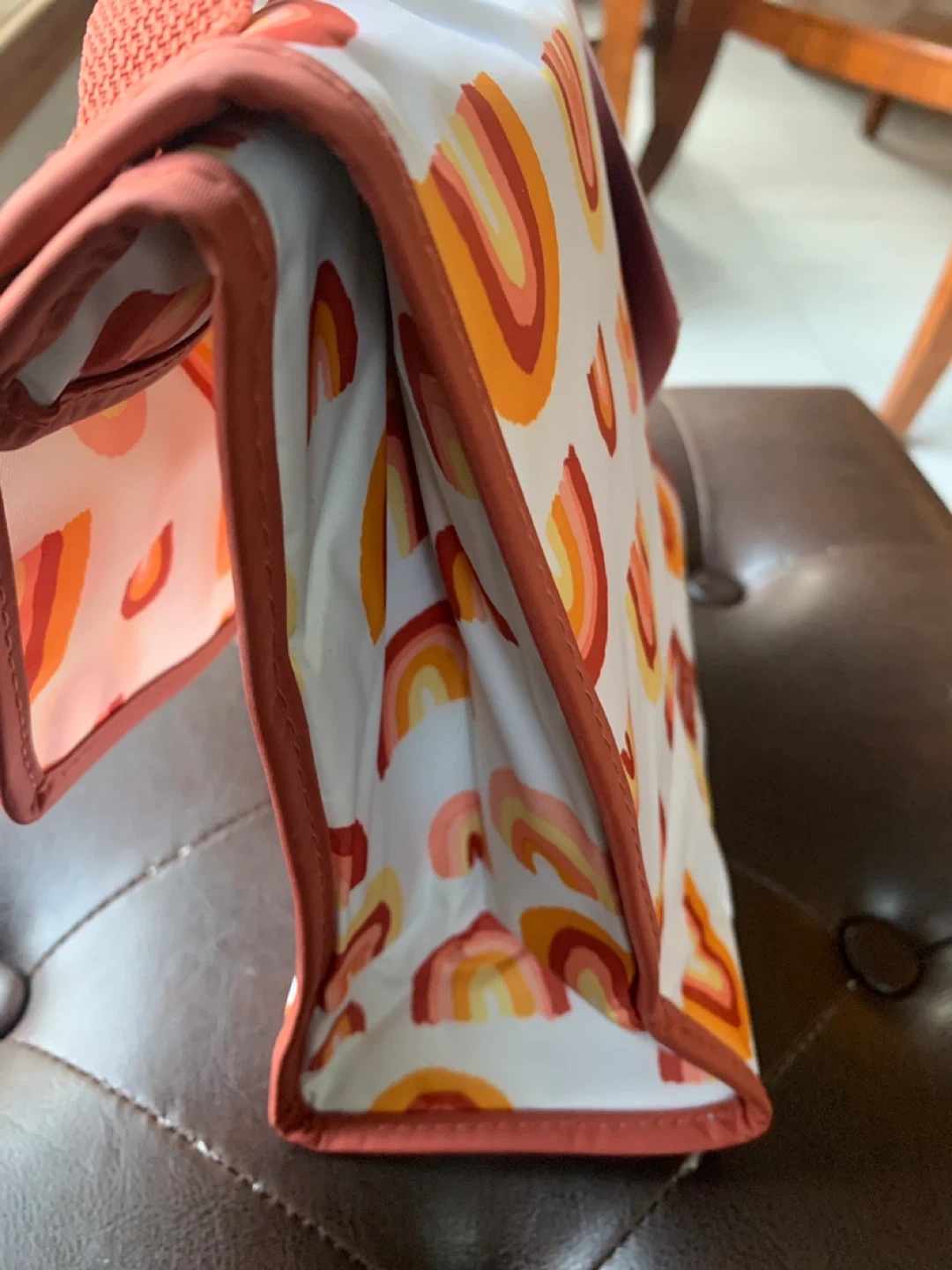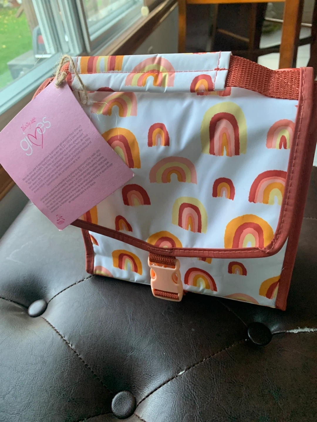 This Thirty-One thermal pouch is perfect for keeping your lunch cool! It features a cute rainbow pattern and a secure closure. Great for school, work, or picnics.