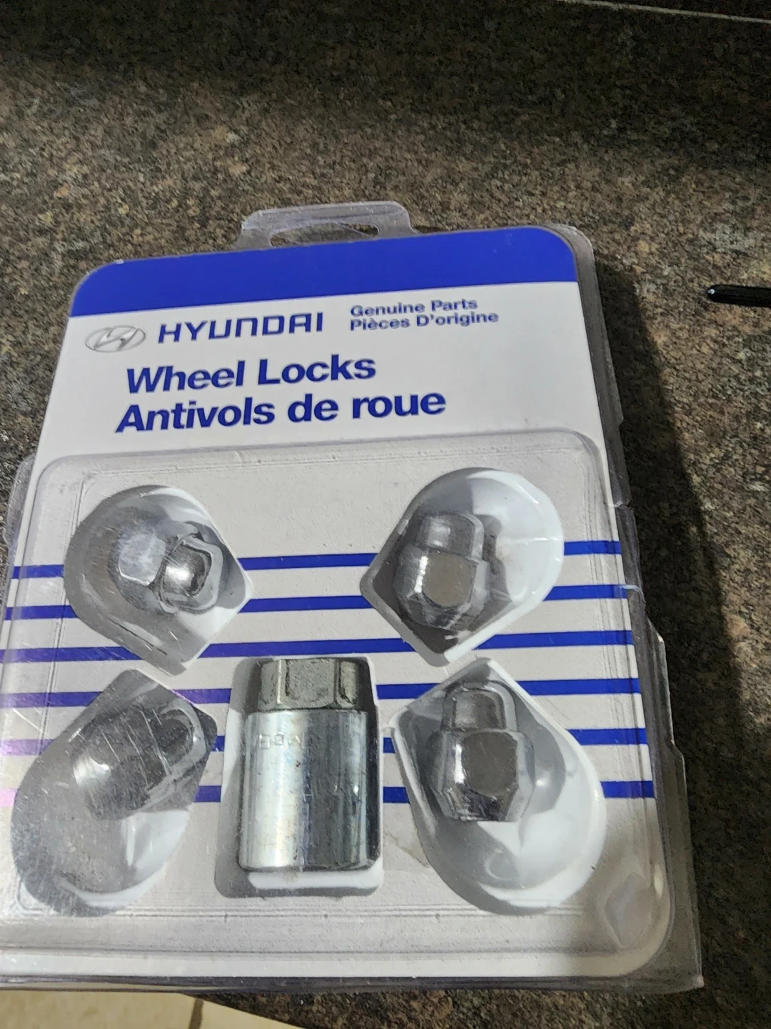 Selling a set of Hyundai Wheel Locks. They're brand new in the original packaging. These wheel locks are designed to provide maximum security for your wheels. They are made from tough, hardened one-piece construction, preventing parts from damage or corrosion. Includes installation instructions. Great ti prevent people from taking your tires