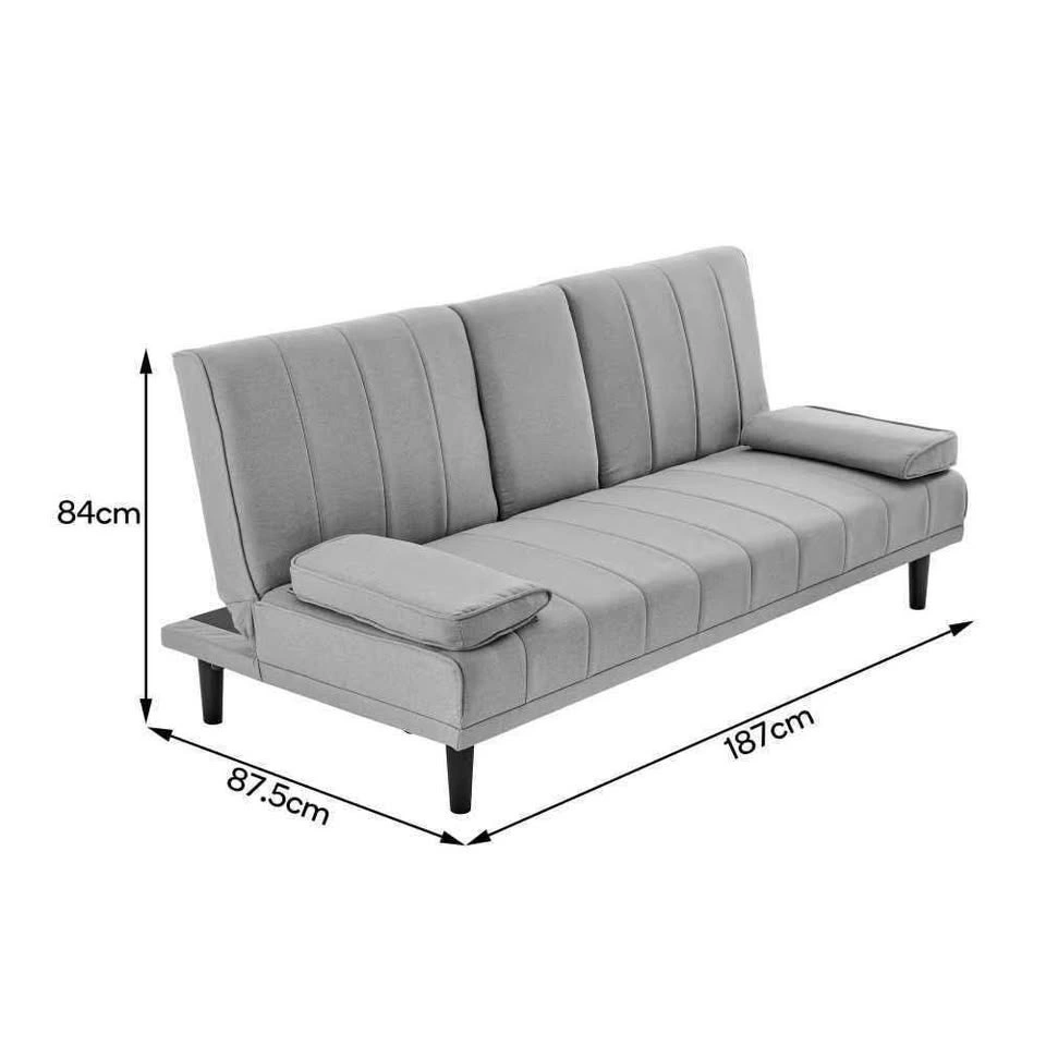 Upgrade your living room or guest space with this stylish Bonita Pintuck 3-seater fabric sofa bed. The sleek grey finish features a fold-down centre console with 2 cupholders, and the convertible bed design makes it perfect for movie nights, guests, or small apartments. Easy assembly with included hardware and a compact footprint (about 187 cm wide) with modern stitching give you comfort without taking over your room.