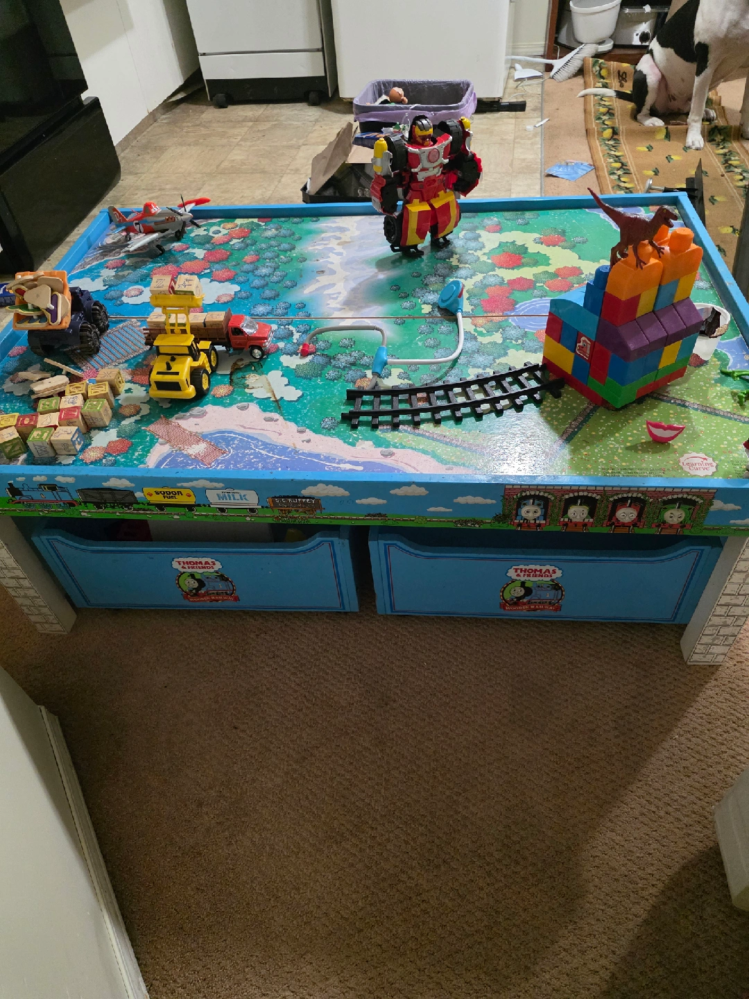 63Selling a Thomas & Friends train table! . The table also has two storage drawers underneath, perfect for keeping everything organized that roll out dimensions 34 in x 49 in x 18 in