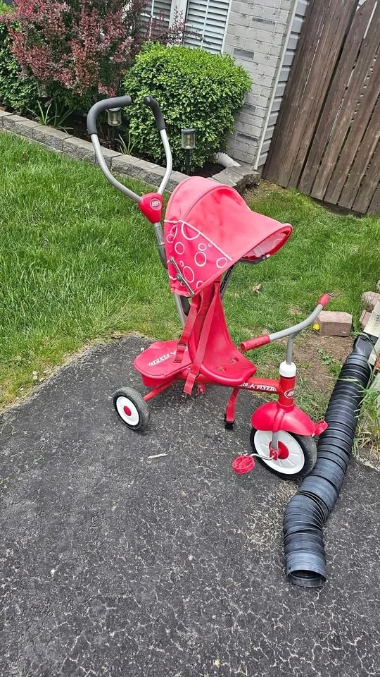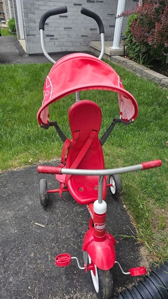 Radio Flyer toddler tricycle/trike with push handle. In good con