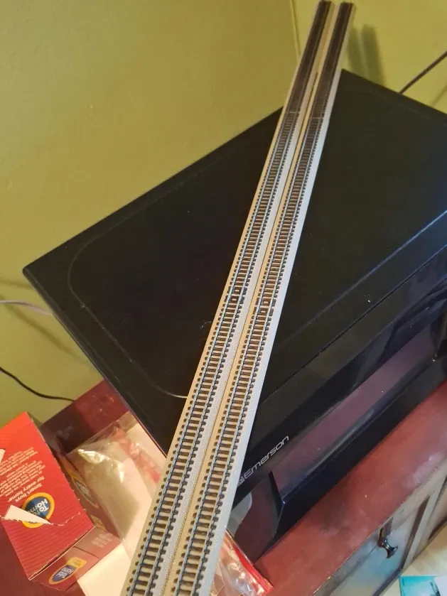 This listing includes two 30" straight sections of model train track. They are standard gauge and designed for model railroads. They're ready to expand your existing layout!
