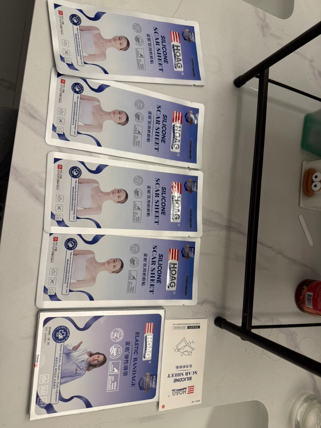 Selling a set of HOAG silicone scar sheets and elastic bandage.