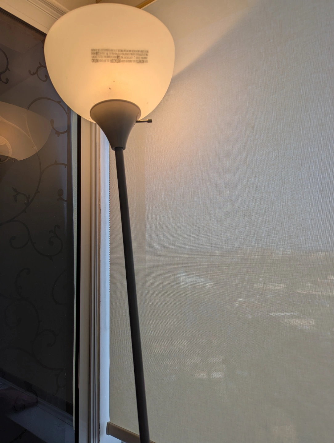 Selling Two floor lamps-, tall and slender with a frosted glass shade. All in excellent condition.
