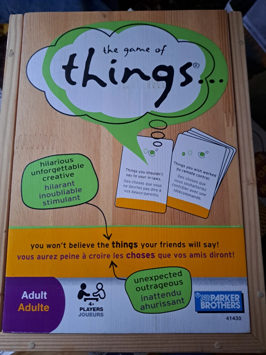 This is the adult version of the hilarious and outrageous party board game, The Game of Things. It's for 4+ players and promises a lot of laughs. Get ready for some unexpected answers!