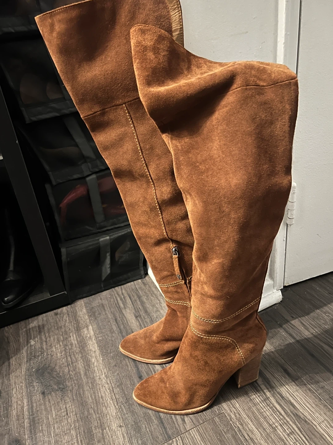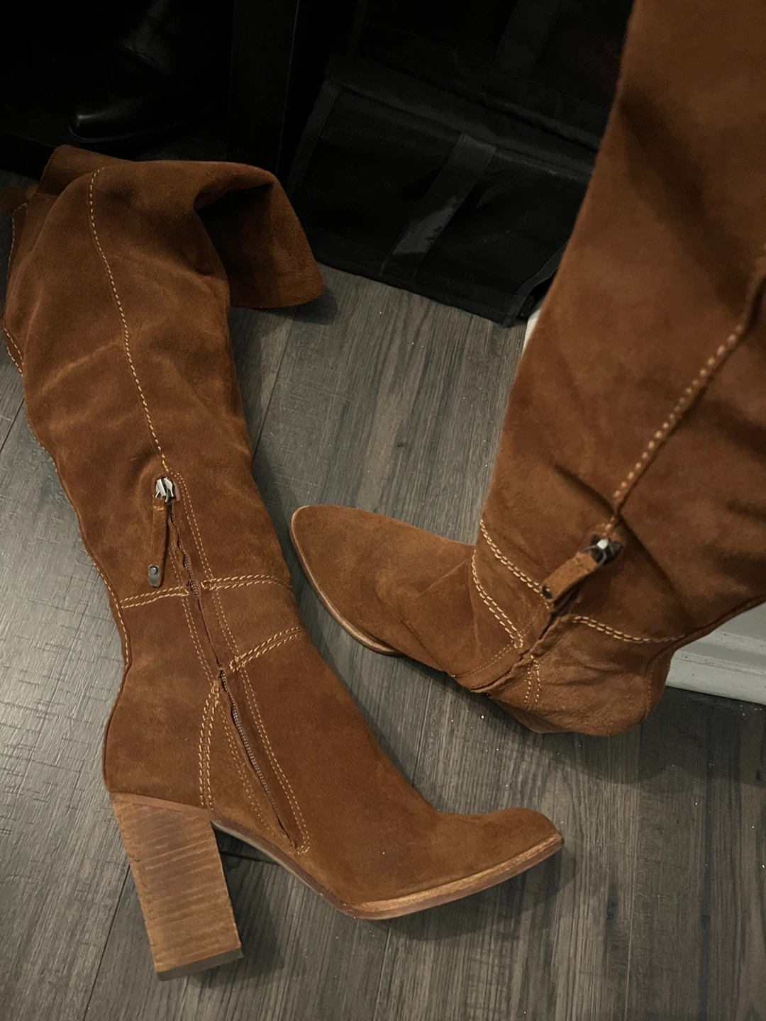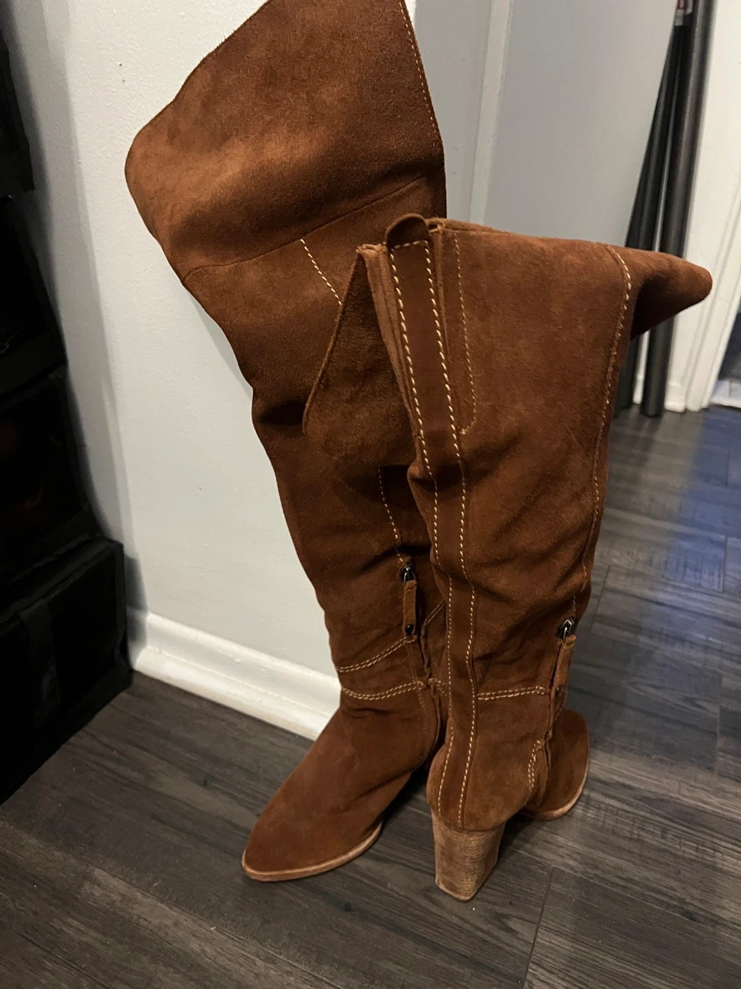 Buy & SellBrown Suede Over-the-Knee BootsBrown Suede Over-the-Knee Boots$50These stylish brown suede boots are over-the-knee height. They feature a side zipper for easy on and off and a comfortable block heel. Suede material.ConditionLike newSize9WHERE TO MEETKeele/WilsonView MapSELLERverifiedAnnDownsview600 reviews0 chats·1 favorites·9 viewsSEND CHAT TO SELLERHi Ann! I’m interested in your listing.Hi Ann! I’m interested in your listing.Get the Karrot app to chatSign In to chat