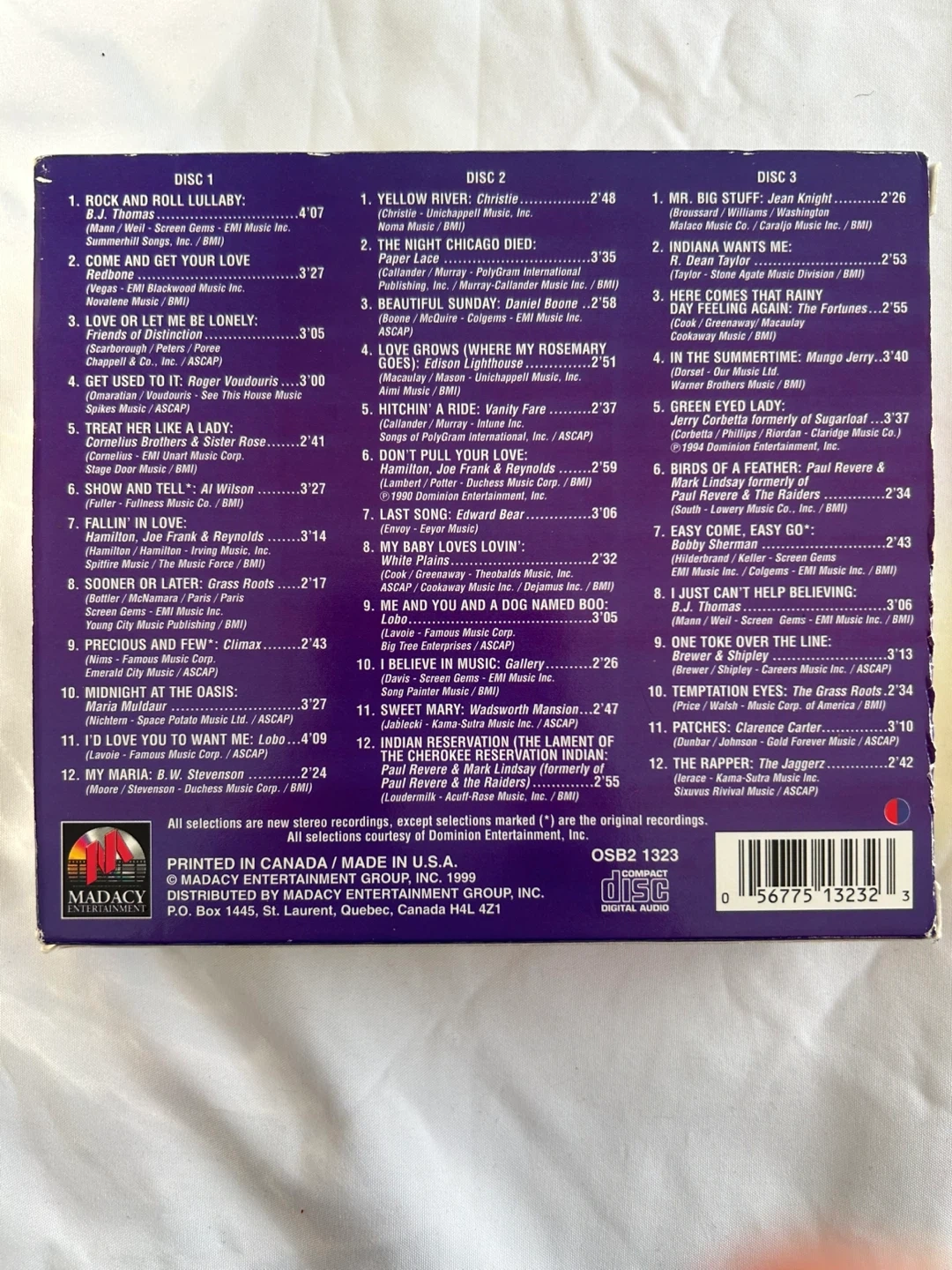 This is a 3-disc set featuring classic 70s rock hits from original artists. Includes volumes 1, 2 and 3. Manufactured in Canada. All selections are the original artist recordings