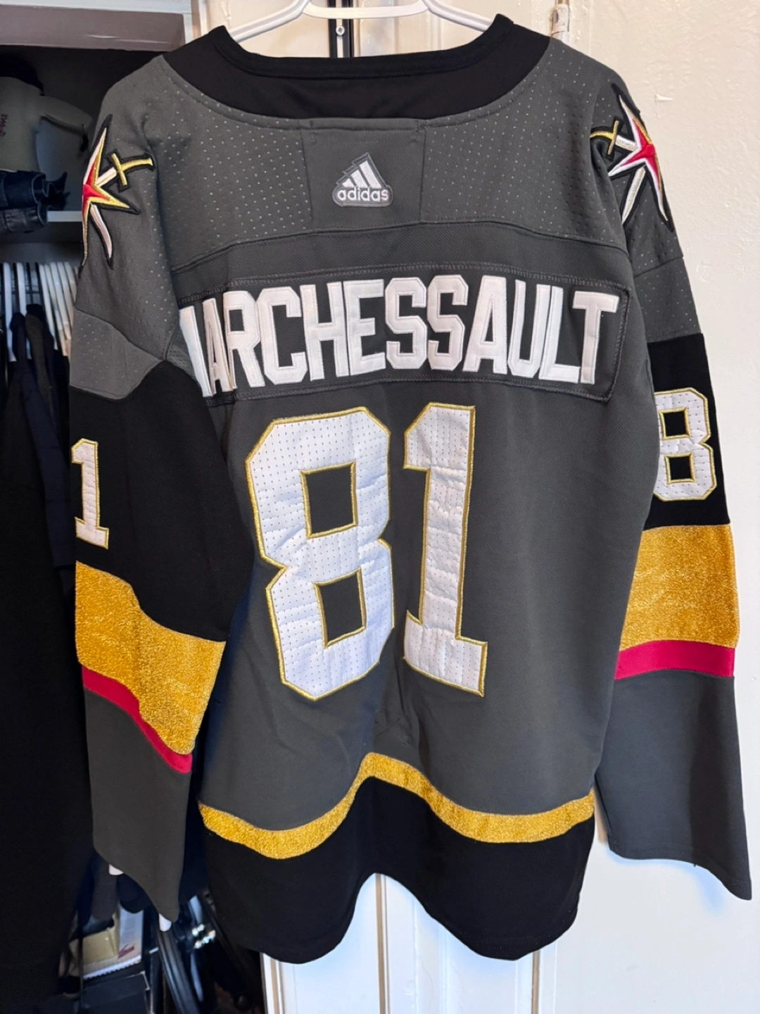 Adidas NHL Vegas Golden Knights Reverse Retro jersey. Number 81, Grey with gold and black accents. Excellent condition. Authentic was told it’s game worn