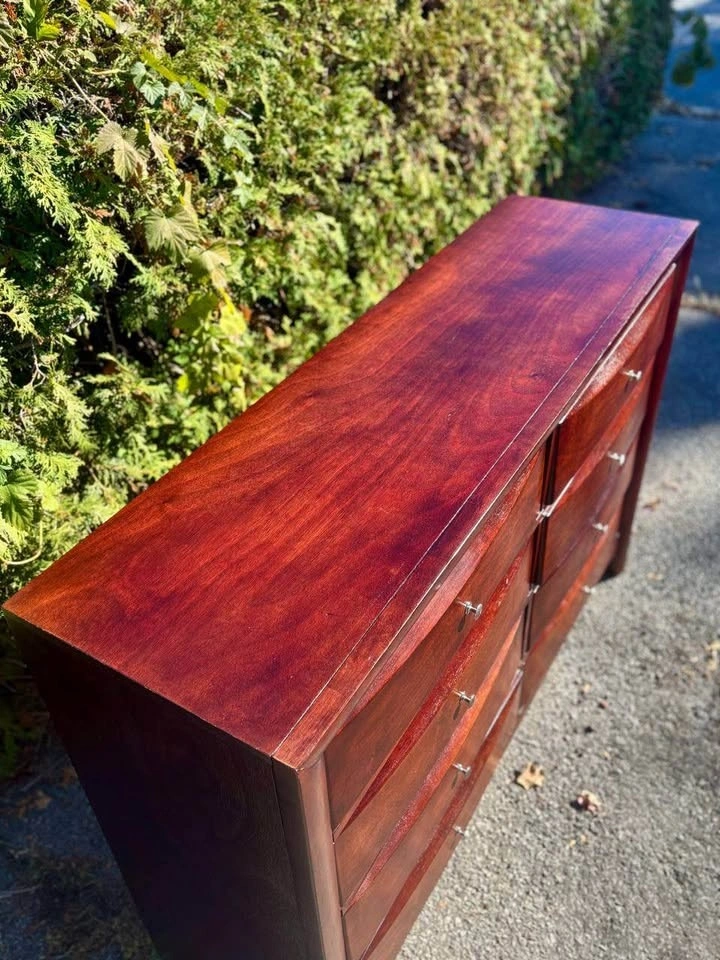 Large solid wood dresser with 8 smooth-sliding drawers.
