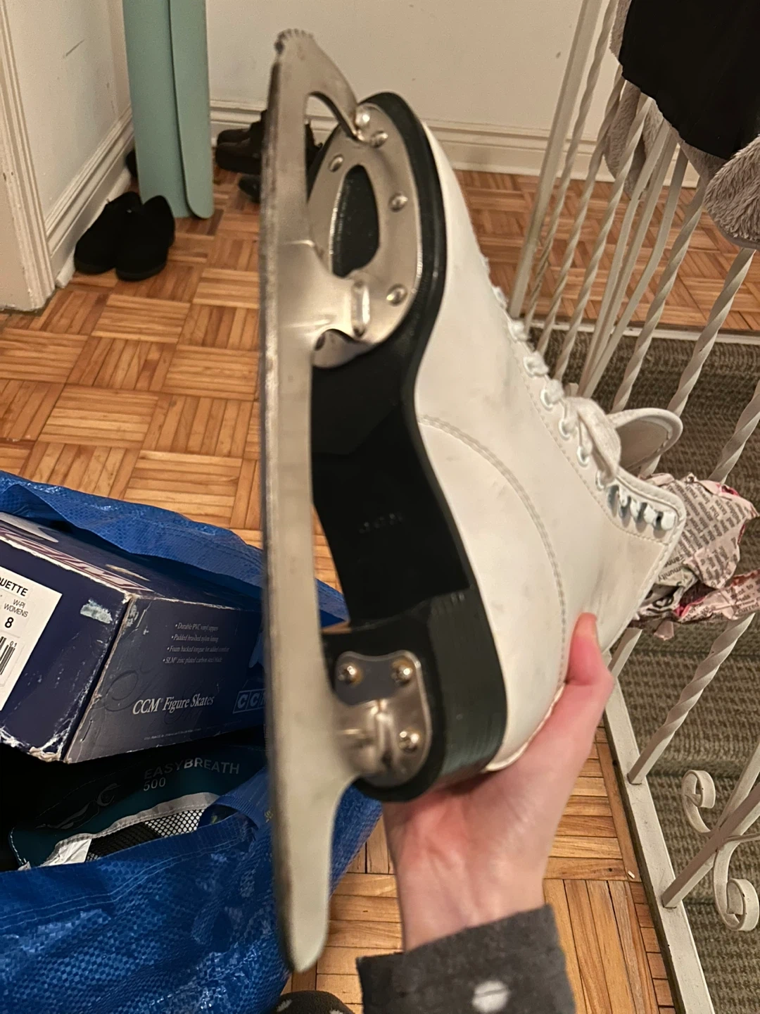 Women’s skates in size 8. White leather boots with laces. .