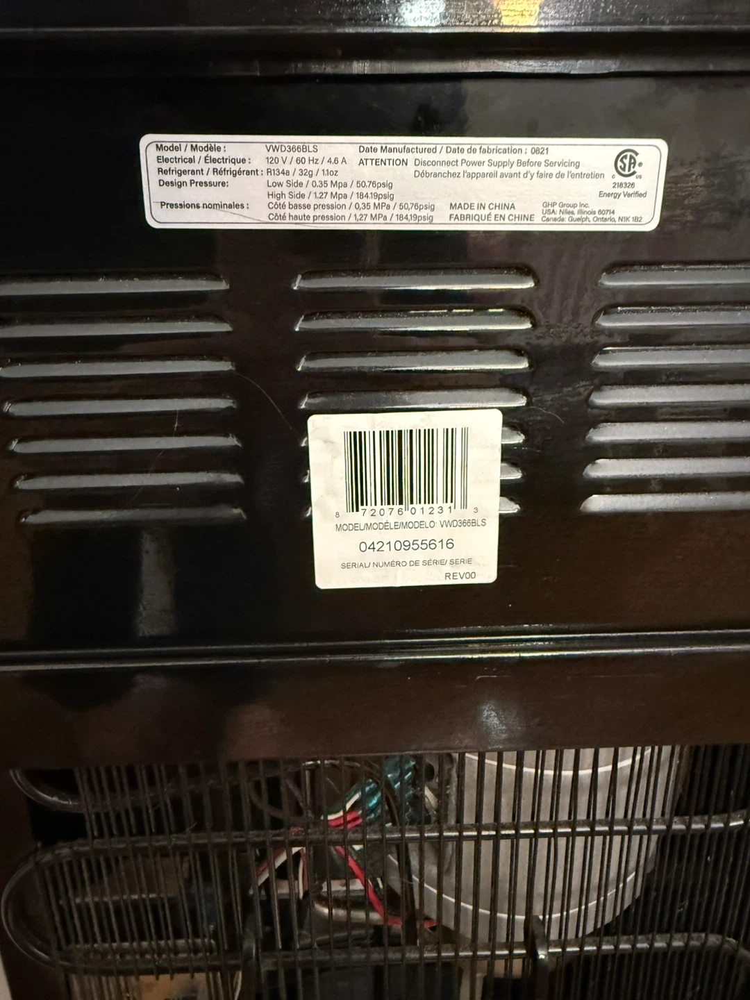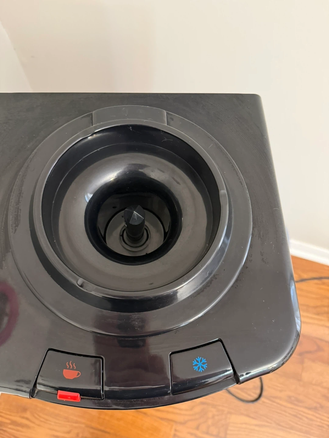 This Vitapur water cooler dispenser provides hot and cold water. It has a black finish and a stainless steel accent. The model number is VWD368BLS.