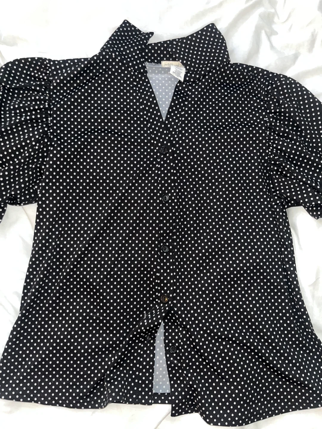 Pebble and Stone Black Polka Dot Blouse - Size Small