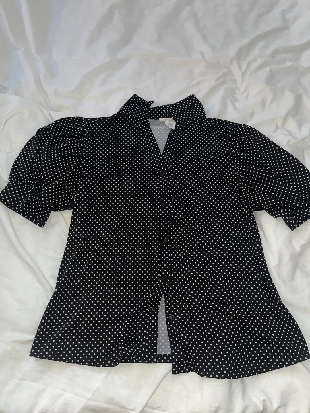 Pebble and Stone Black Polka Dot Blouse - Size Small
