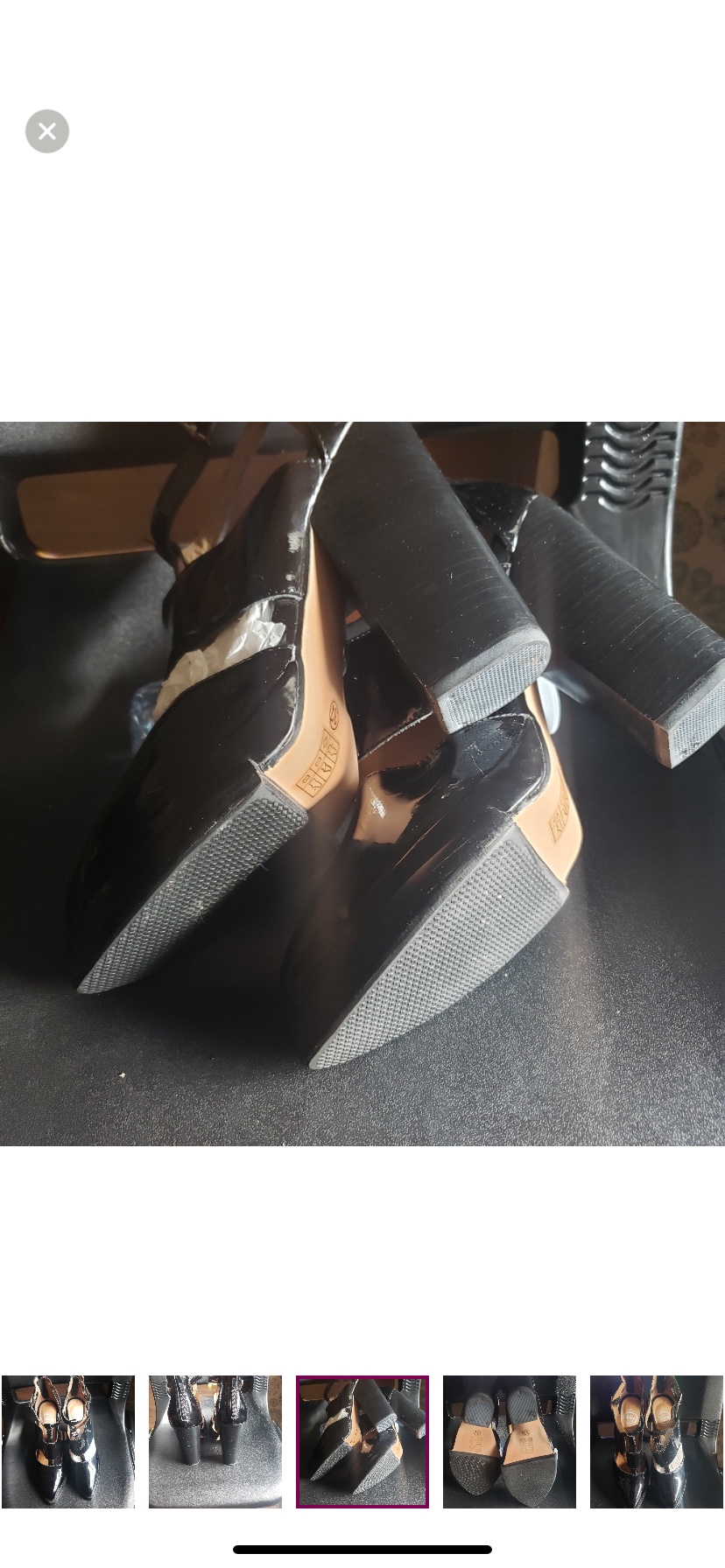 Gorgeous Jeffrey Campbell Black patent leather heels with a chunky heel. Ankle strap with buckle closure.