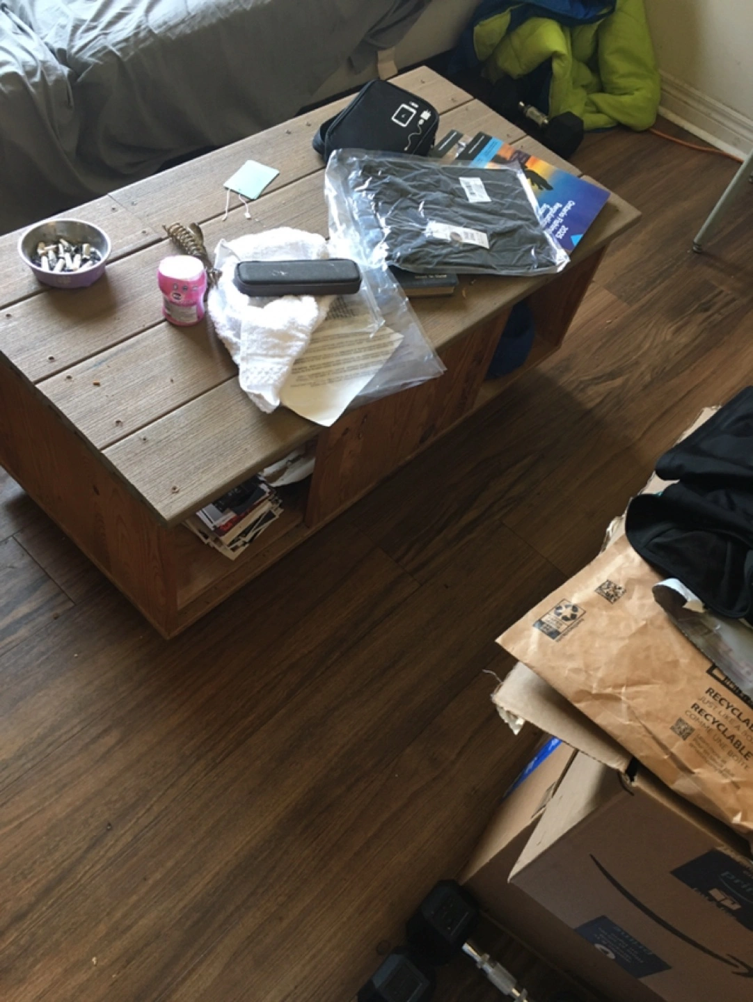 Selling a sturdy wooden coffee table with built-in storage! It's perfect for keeping books, magazines, or other items neatly organized. The table has a rustic look and would be a great addition to any living room or den. It's in good condition and ready for a new home