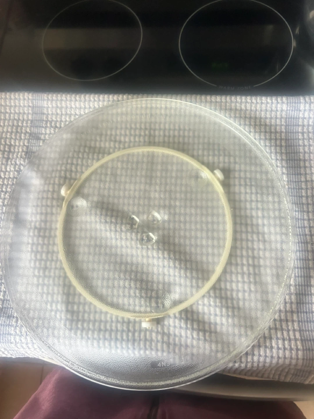 A clear glass turntable plate for microwave.