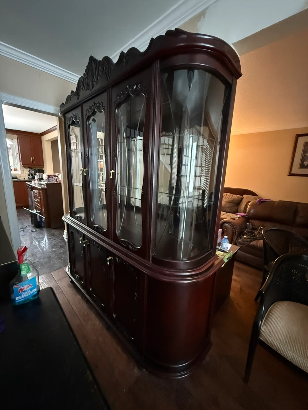 Dark Wood China Cabinet with Glass Doors