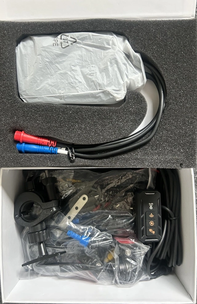Brand new motorcycle dual camera recorder DVR with front and back cameras. Features a 3.0-inch IPS screen, Wi-Fi, and is IP67 waterproof. Supports Full HD 1080P recording. Includes loop recording and automatic collision locking. Only 2 in stock.