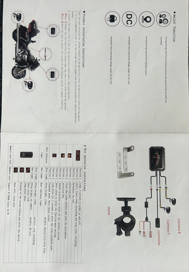 Motorcycle Dual Camera Recorder DVR Front and Back