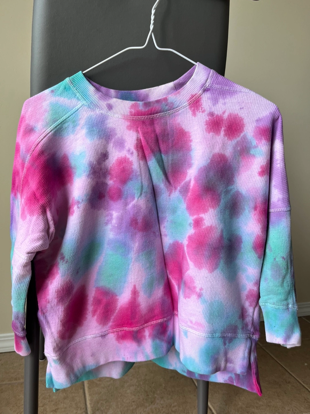 Selling a colourful tie-dye crewneck pullover. Size m / age 9 years or older. •cash only
