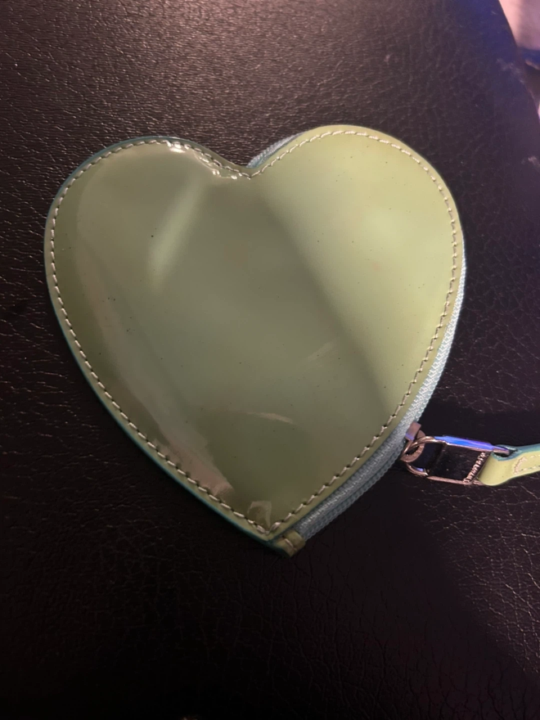 23Cute Tiffany & Co. heart-shaped coin pouch in a lovely light green/blue colour! It's perfect for holding your change or small items. There are some signs of wear inside. It is original vintage, deteriorated inside, perfect for collectors.
