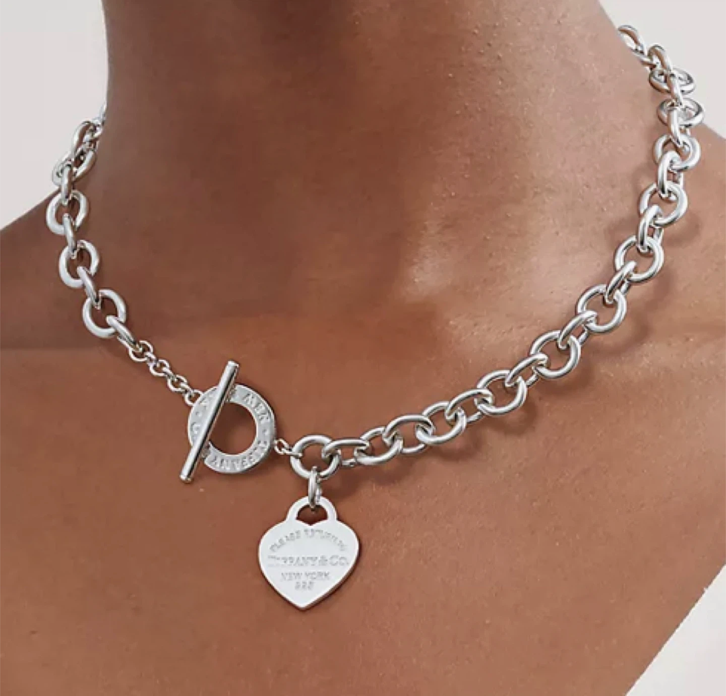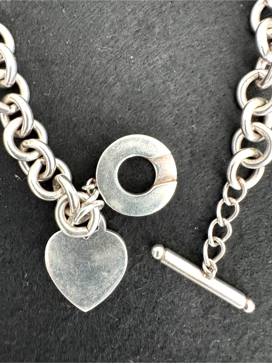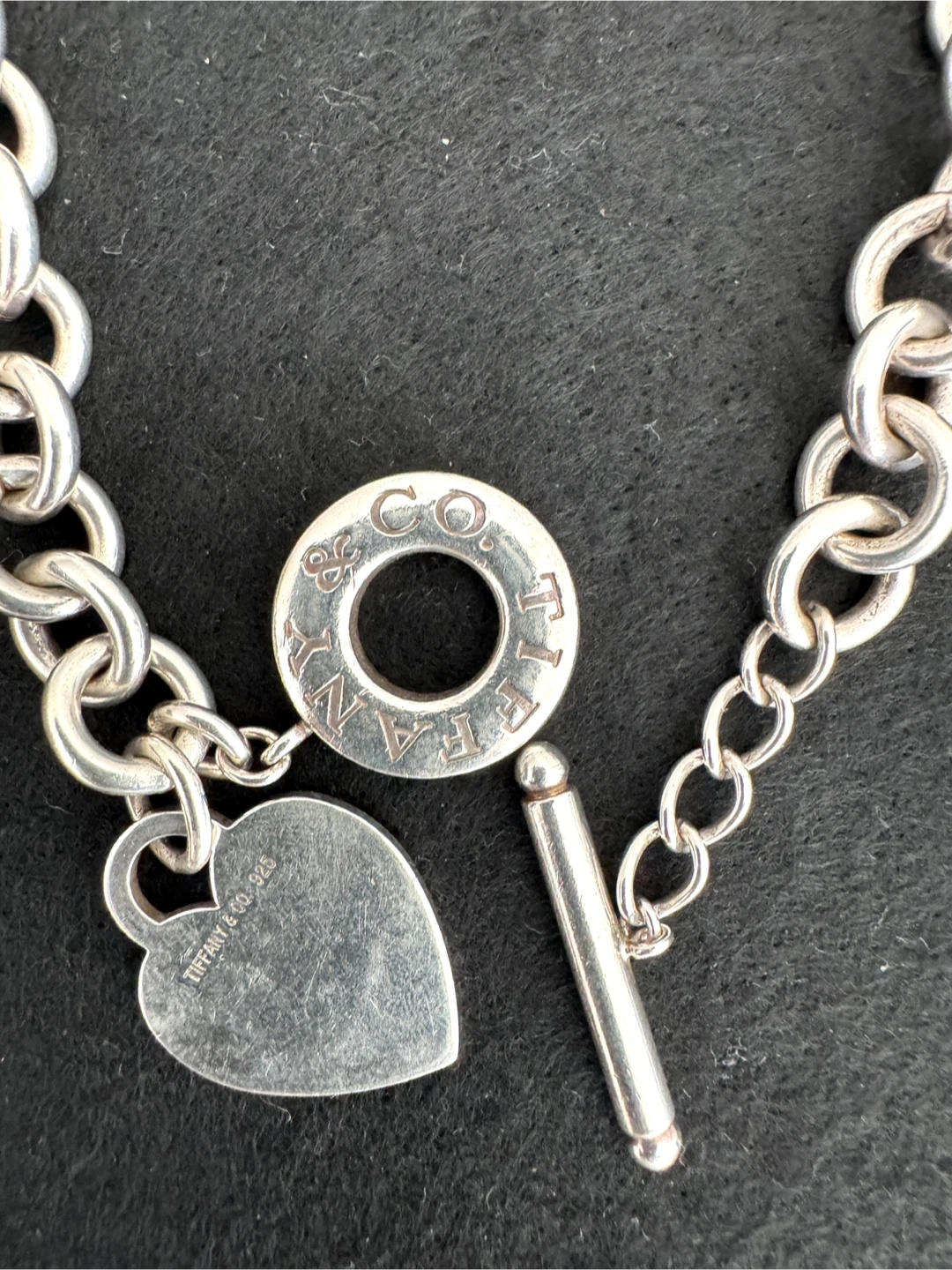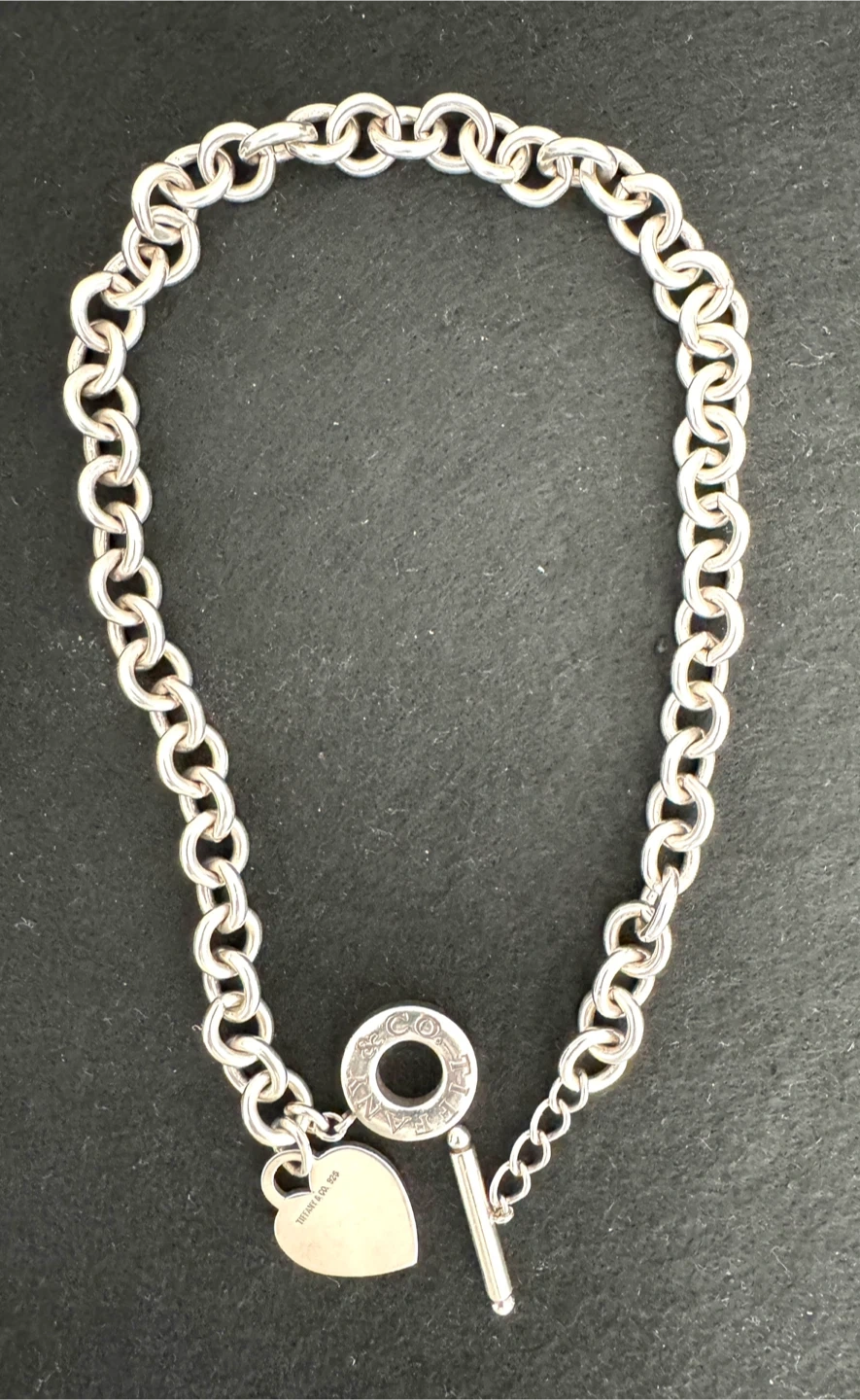 68Selling a Tiffany & Co. chain necklace. It features a heart charm and a toggle closure. The necklace is made of sterling silver. Inspired by the iconic key ring first introduced in 1969, the Return to Tiffany collection is a classic reinvented. Sterling silver Fits up to 16"
