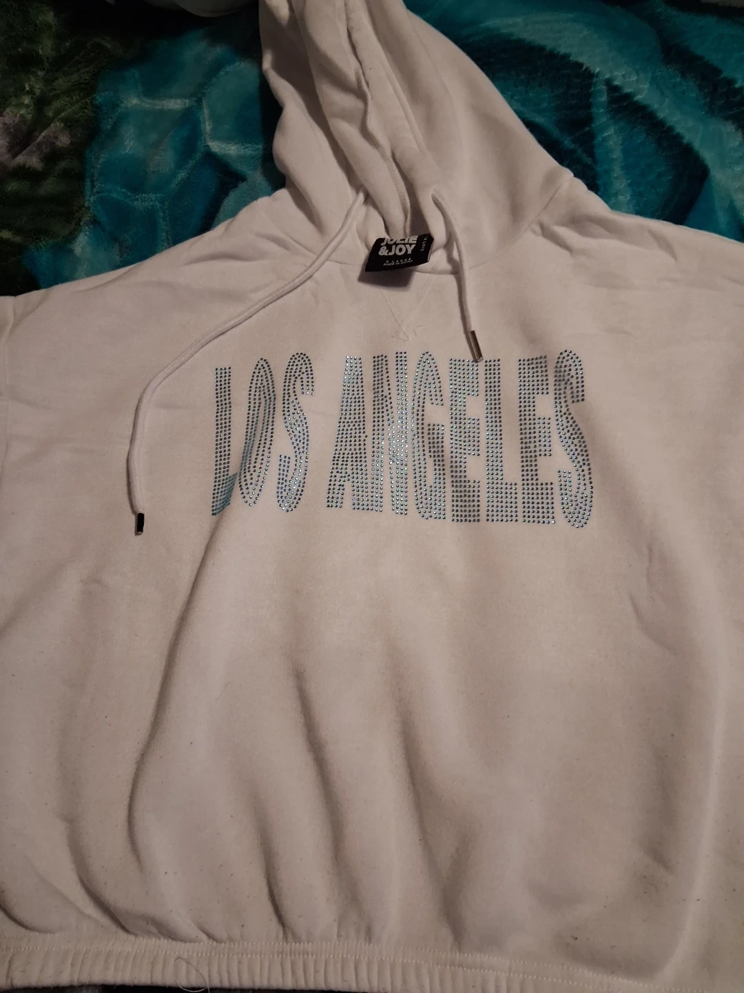 White "Los Angeles" rhinestone hoodie