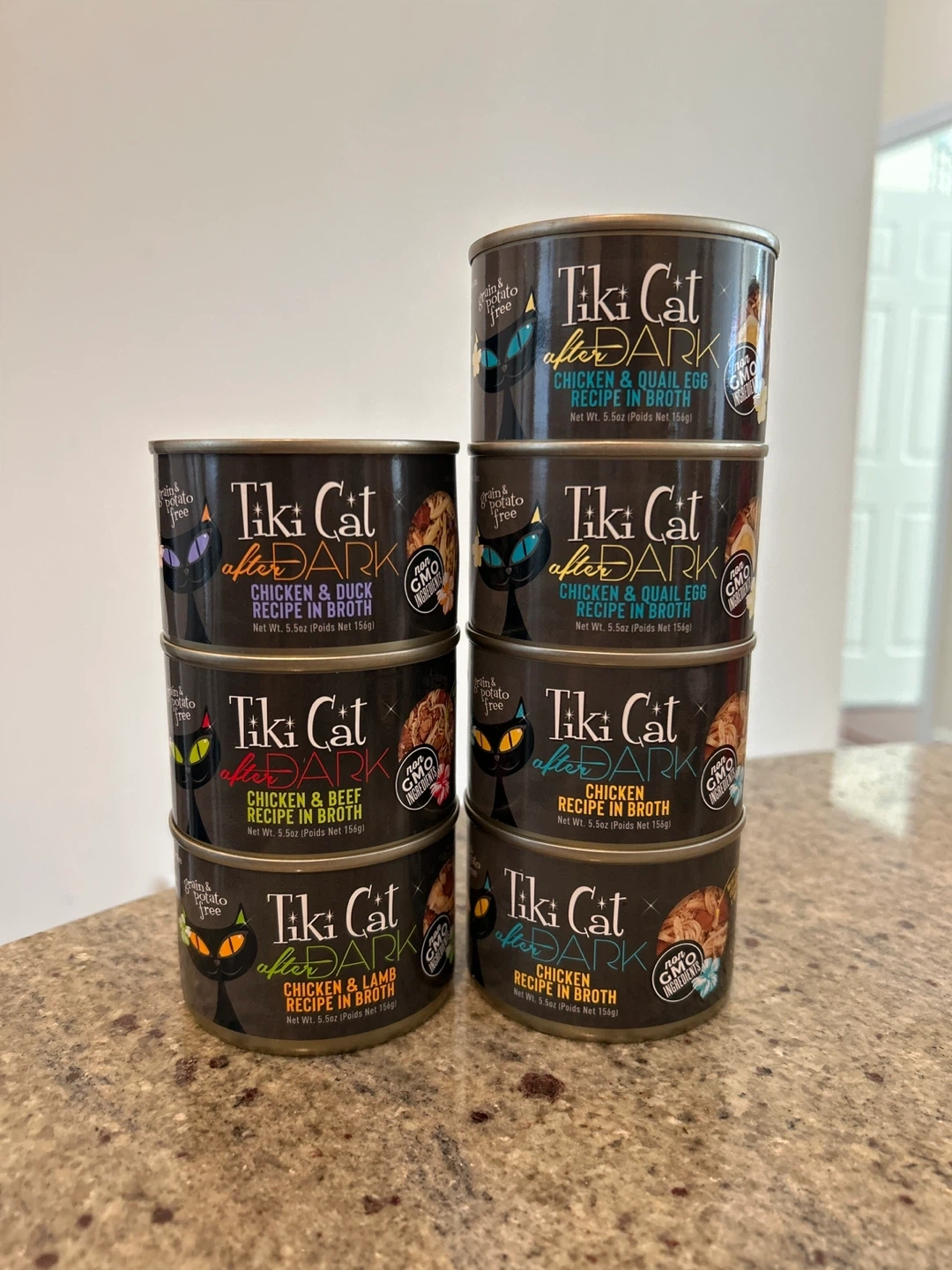 61Tiki cat after dark in various flavours, 5.5oz cans. Best before Dec 2027 $5 each or $30 for all 7