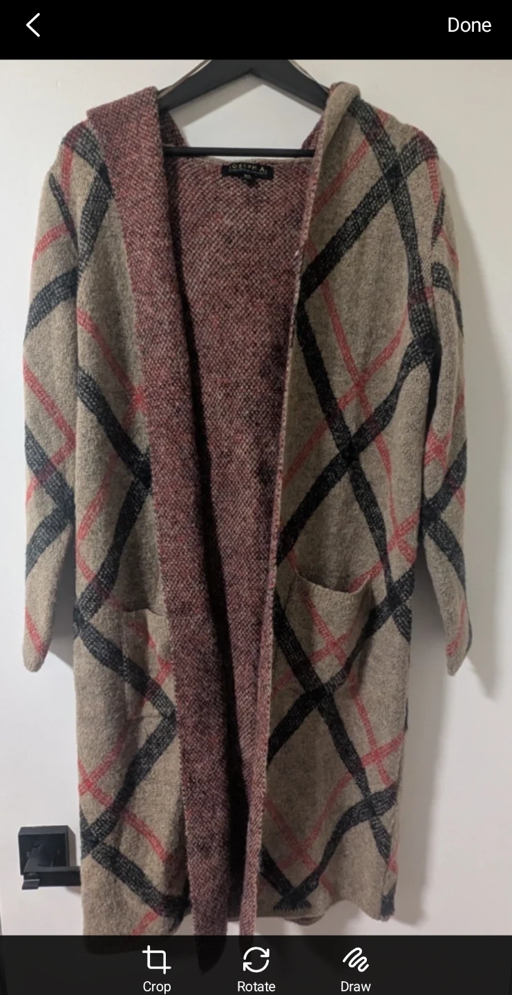 Cozy JOSEPH A. cardigan with a plaid pattern. It's a size XS. This knit piece is perfect for cooler weather!