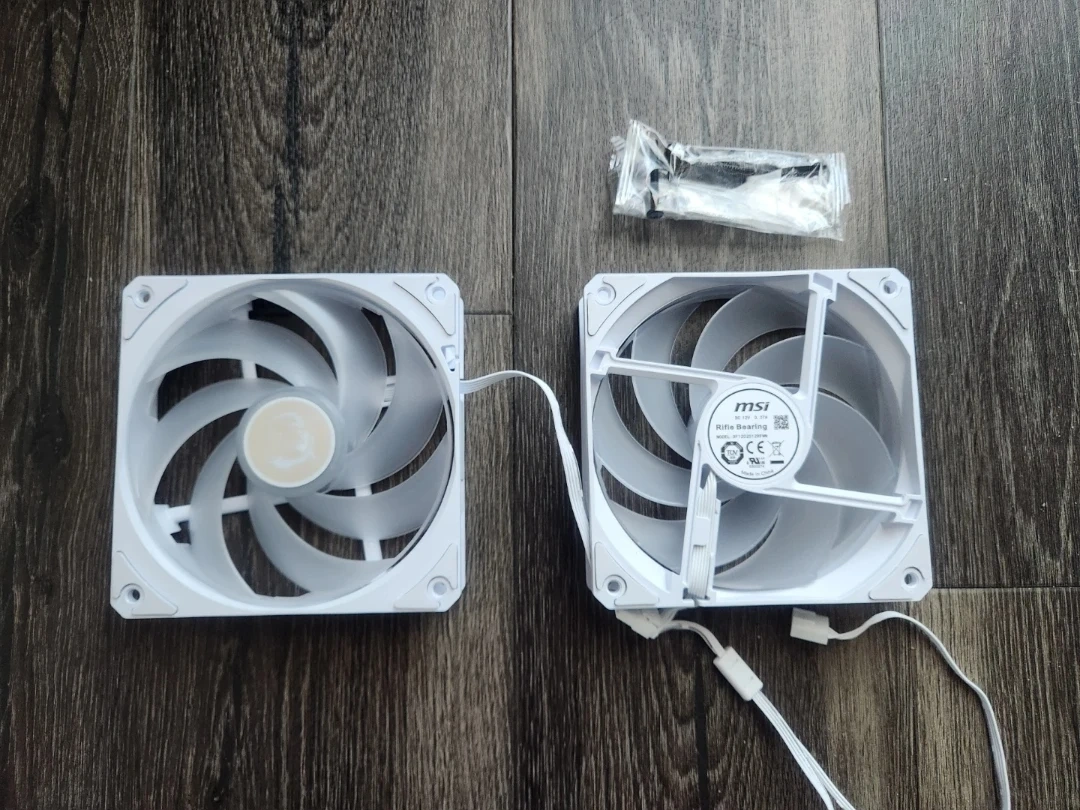 Selling a matching pair of white MSI 120mm fans. These were pulled from a new build/cooler and are in excellent condition. They were replaced immediately as I had my own fans to use. Perfect for a white-themed PC setup.