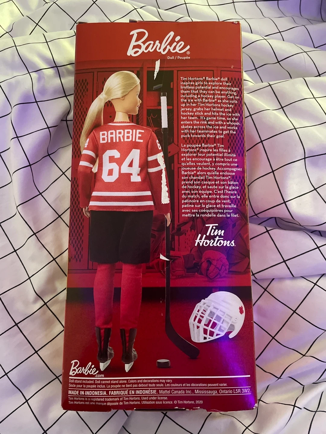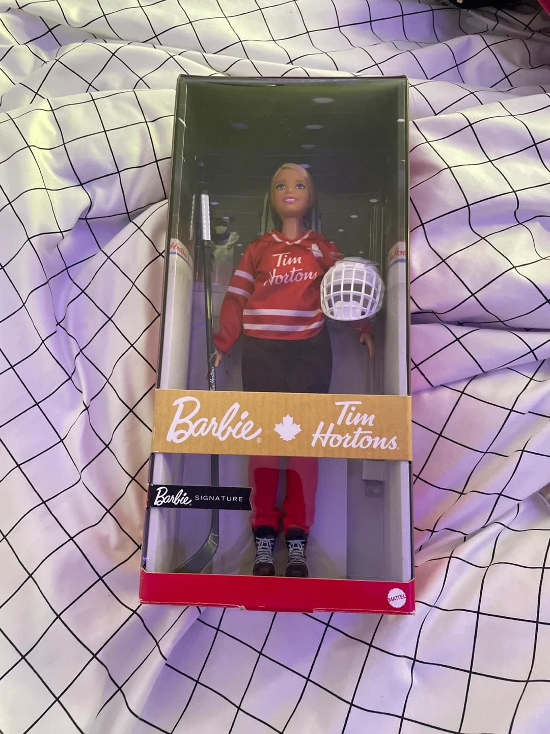Selling a brand new, in-box Tim Hortons Barbie doll! This collectible doll is perfect for any Barbie or hockey fan. She comes with a hockey stick helmet, and puck ready to hit the ice! A great addition to any collection! As well as great collectors item! This is quite a few years old so it’s an original!