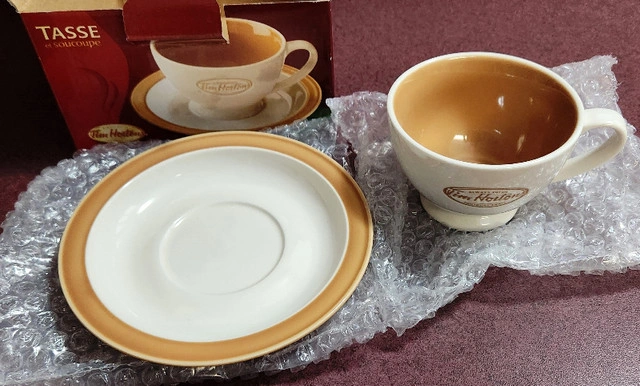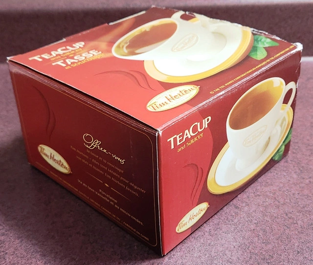 Tim Hortons Teacup and Saucer Set (2006) Limited Edition Brand new in box (which has some wear) - Set of one teacup and saucer (mint condition) - Porcelain, dishwasher & microwave safe - Looks identical to the ones used at Tim Hortons back in 2006 Asking $54.00
