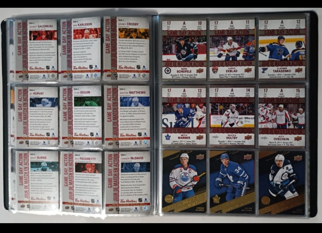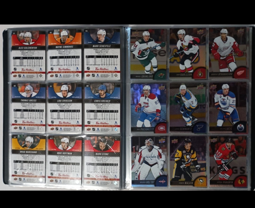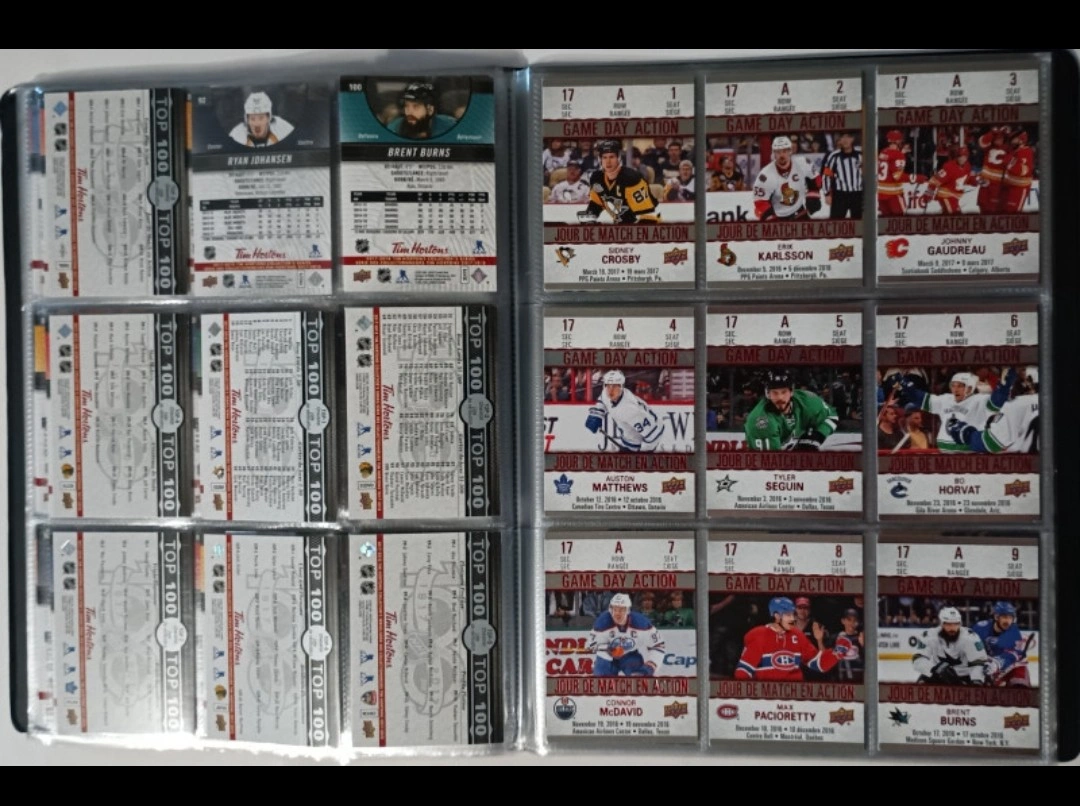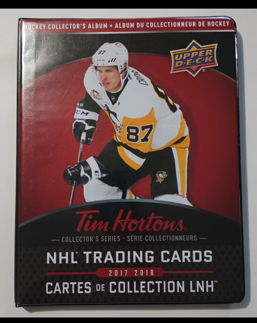 18Selling a Tim Hortons NHL Trading Cards collector's album from the 2017-2018 in great condition TIM HORTON'S 2017-2018 NEAR MASTER SET (( 149 CARDS )) IN ORIGINAL ALBUM ASKING 200$ CONTACT ME IF INTERESTED CHECK MY OTHER ADS