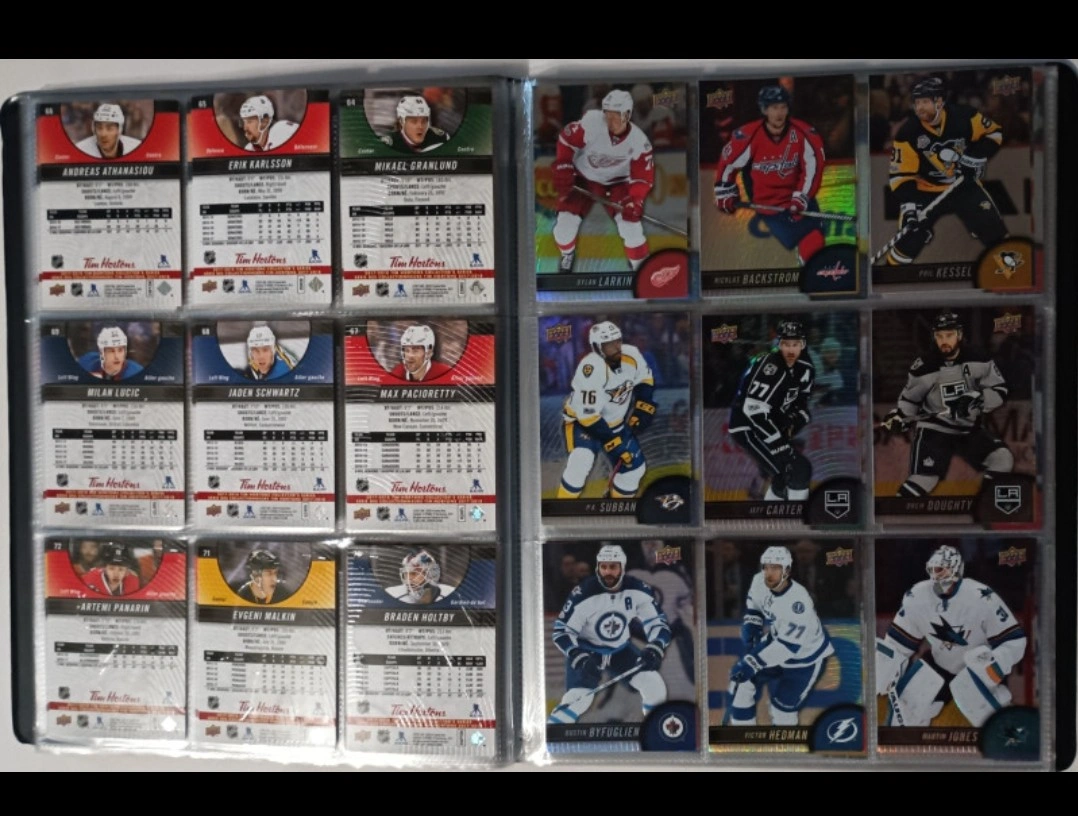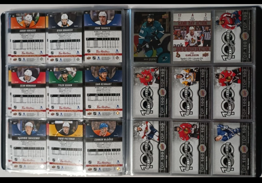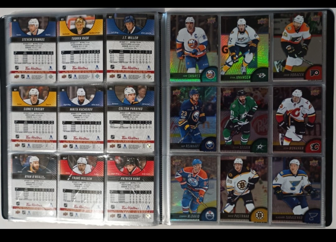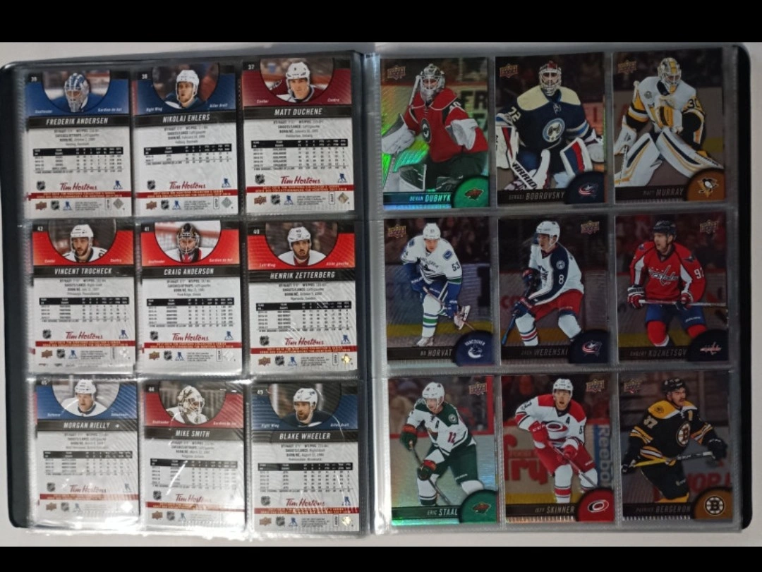 18Selling a Tim Hortons NHL Trading Cards collector's album from the 2017-2018 in great condition TIM HORTON'S 2017-2018 NEAR MASTER SET (( 149 CARDS )) IN ORIGINAL ALBUM ASKING 200$ CONTACT ME IF INTERESTED CHECK MY OTHER ADS