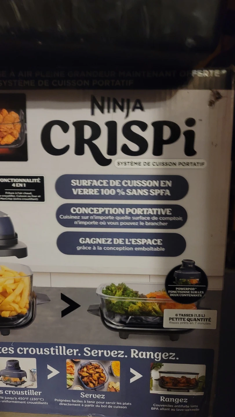 This Ninja Crispi is a portable cooking system that features a 100% non-stick glass cooking surface. Its portable design means you can cook on any countertop. It's designed to save space with an stackable construction.
