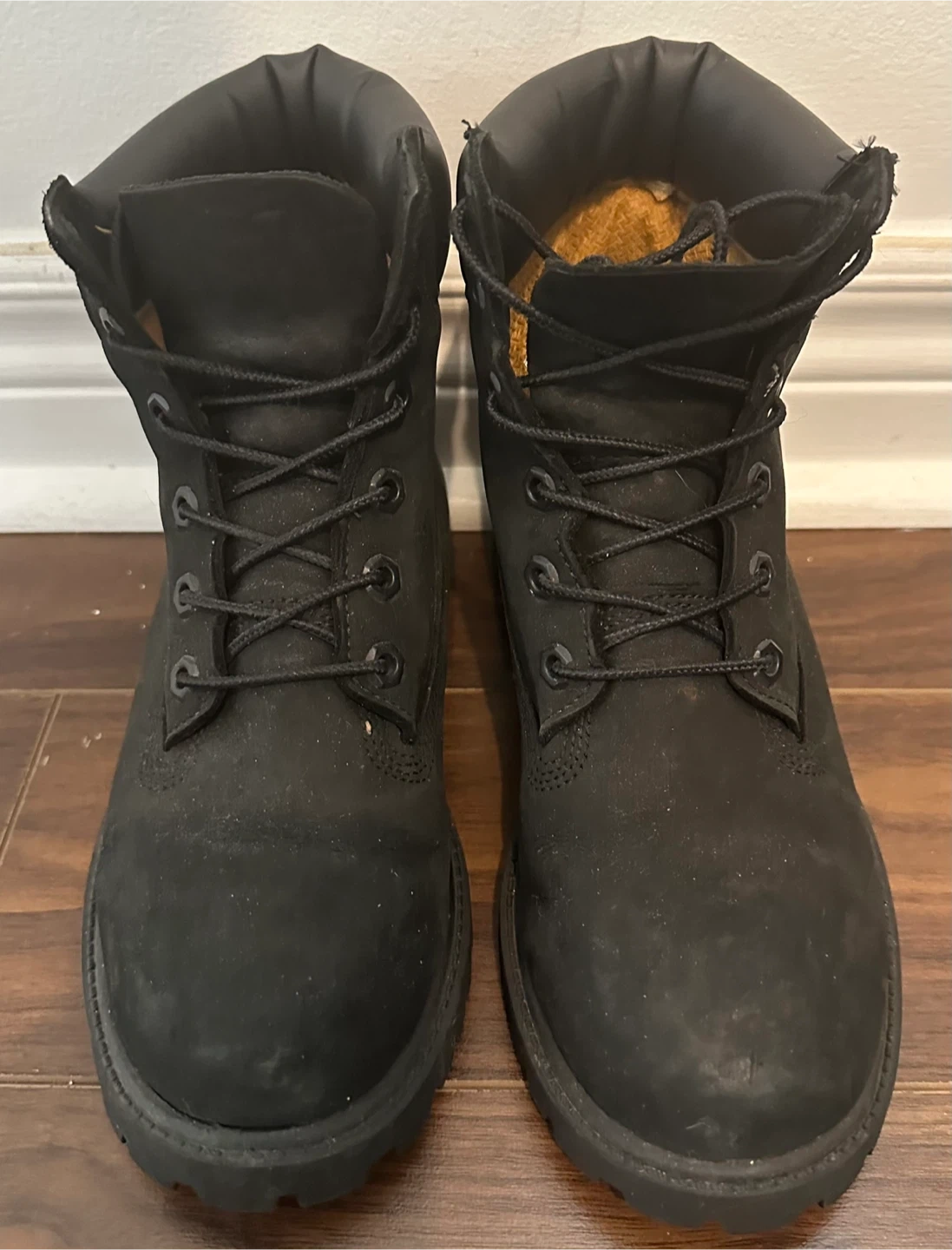 535Selling a pair of Timberland leather boots in black! They are in good condition and ready for a new home. Perfect for all weather, these boots are durable and stylish. EU 31 .