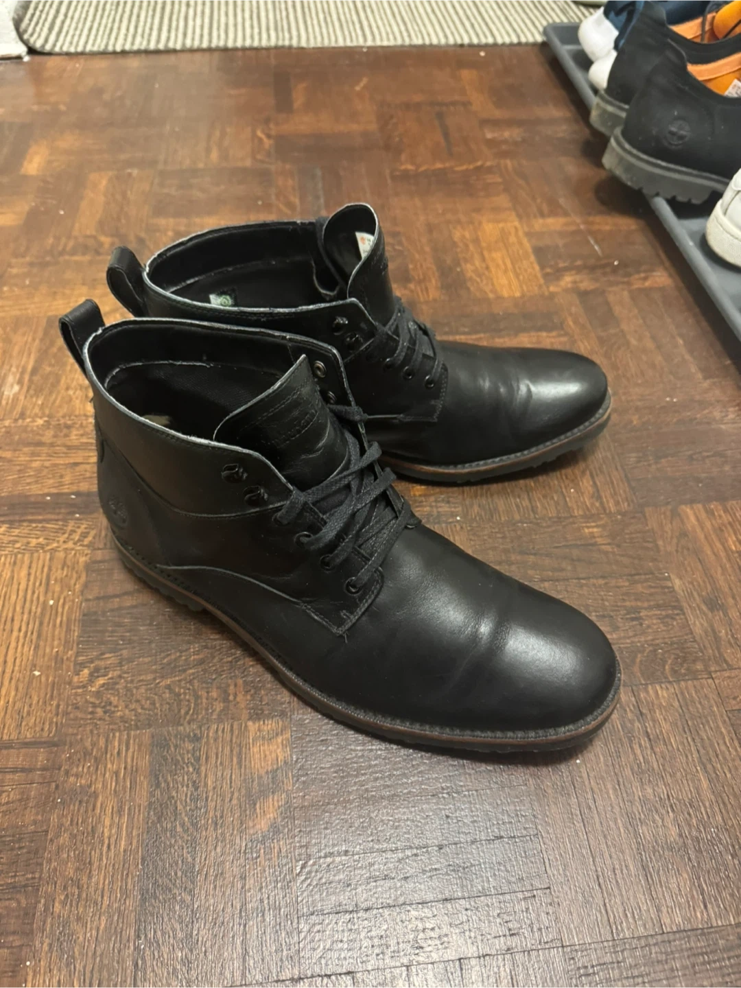 64Selling a pair of Timberland chukka boots in black leather. These are a men's size 11 (US). They are in good condition and ready for a new home!