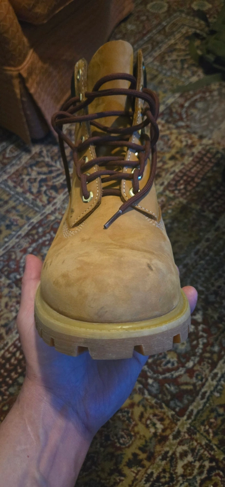 Selling/trade a pair of Timberland boots. They're a classic style and made with durable leather. There are some signs of wear, as you can see in the pictures, but they're like new ! Great for everyday wear or outdoor looking for a trade basketball/hiking shoes size 13 in the same condition < almost new> prefer Keen boots waterproof slip resistant or military grade boots thanks.